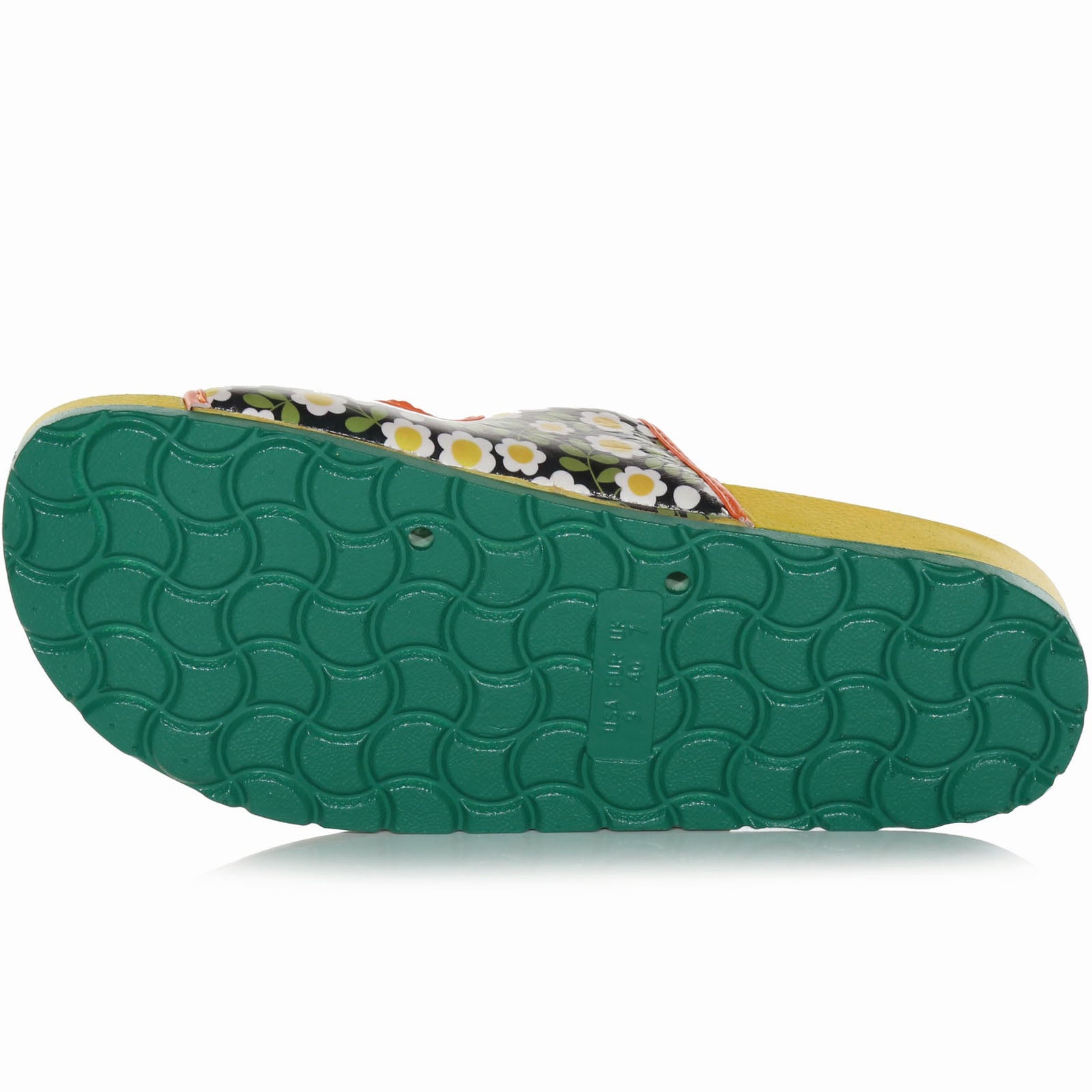 • Bold, printed graphic sandals with playful contrasting colour soles
