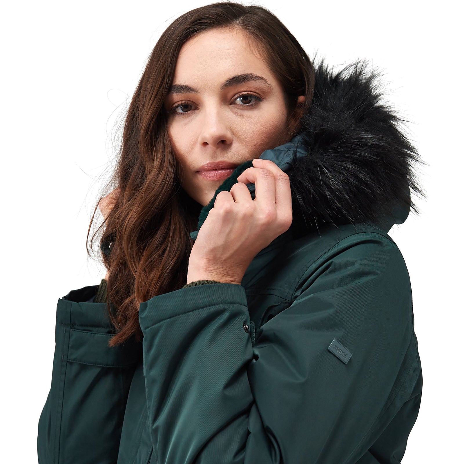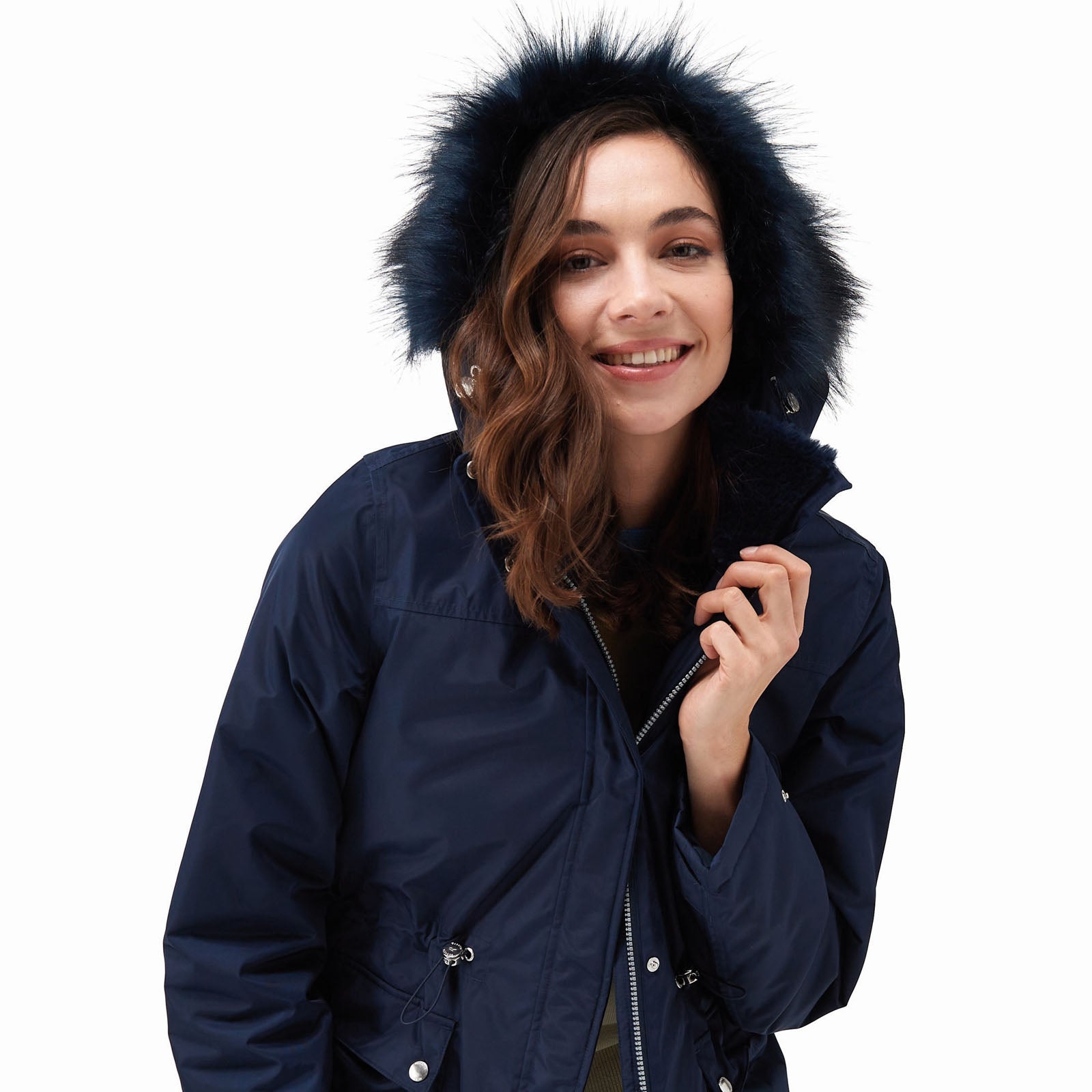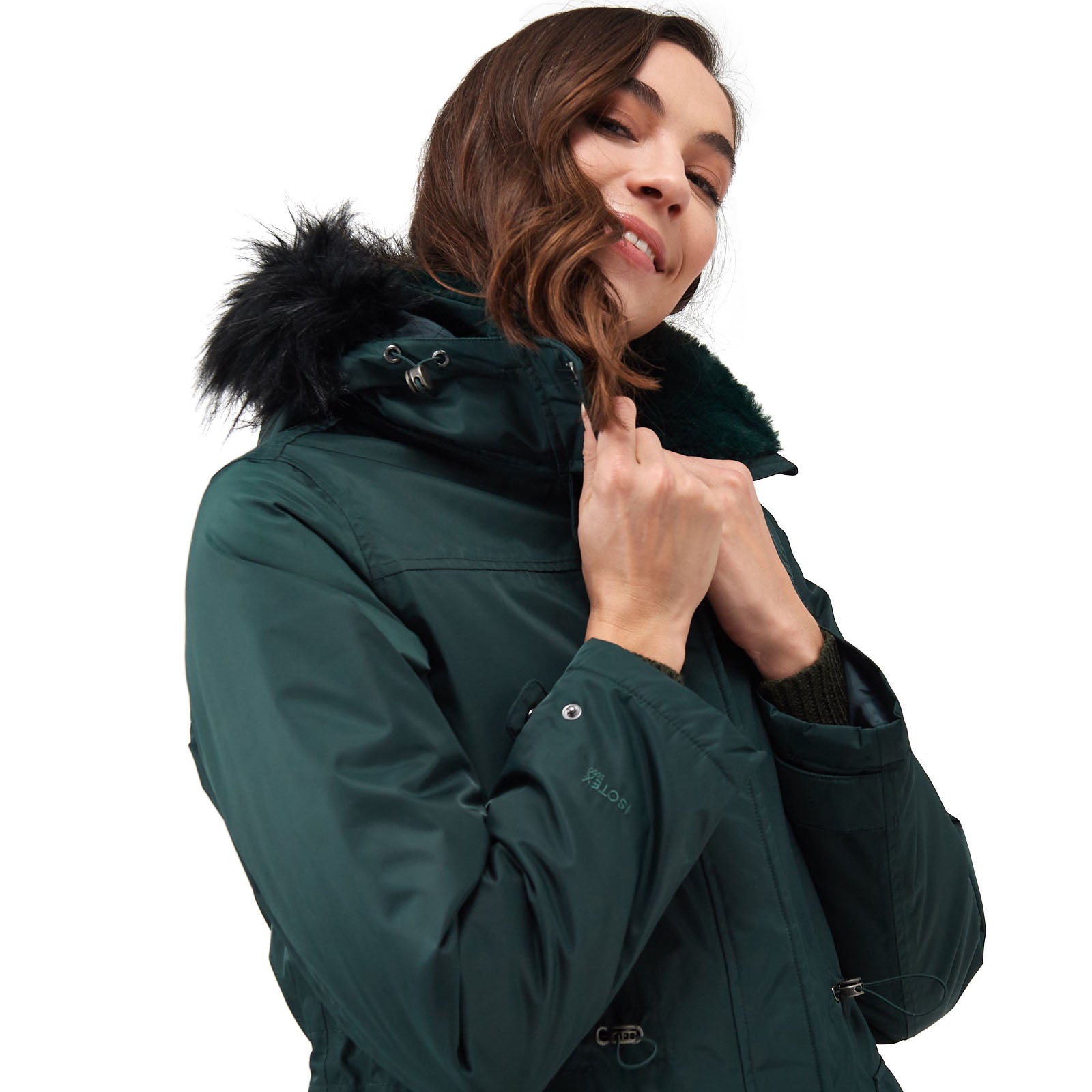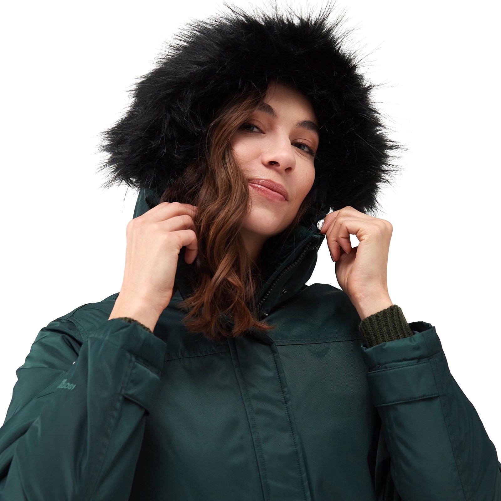 • Grown on hood with adjusters and luxury high pile faux fur trim