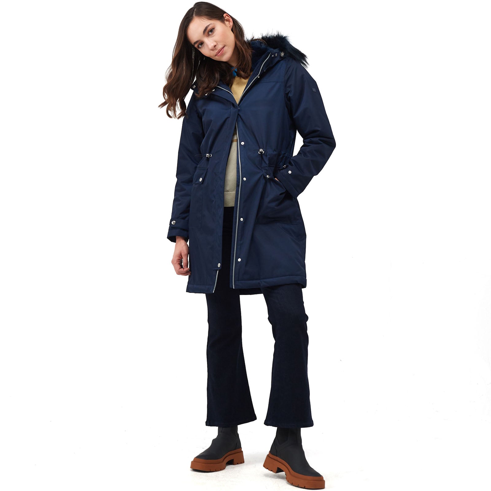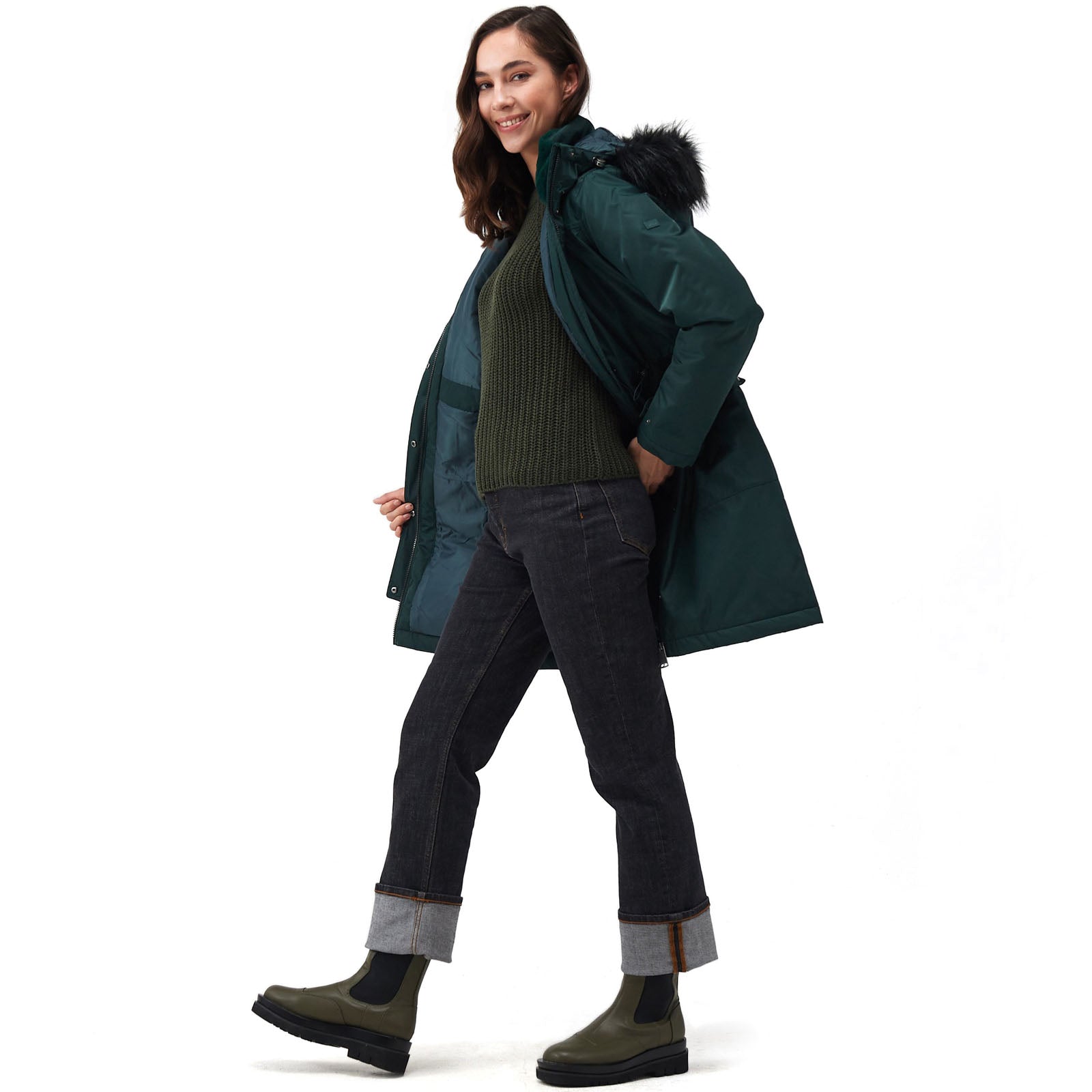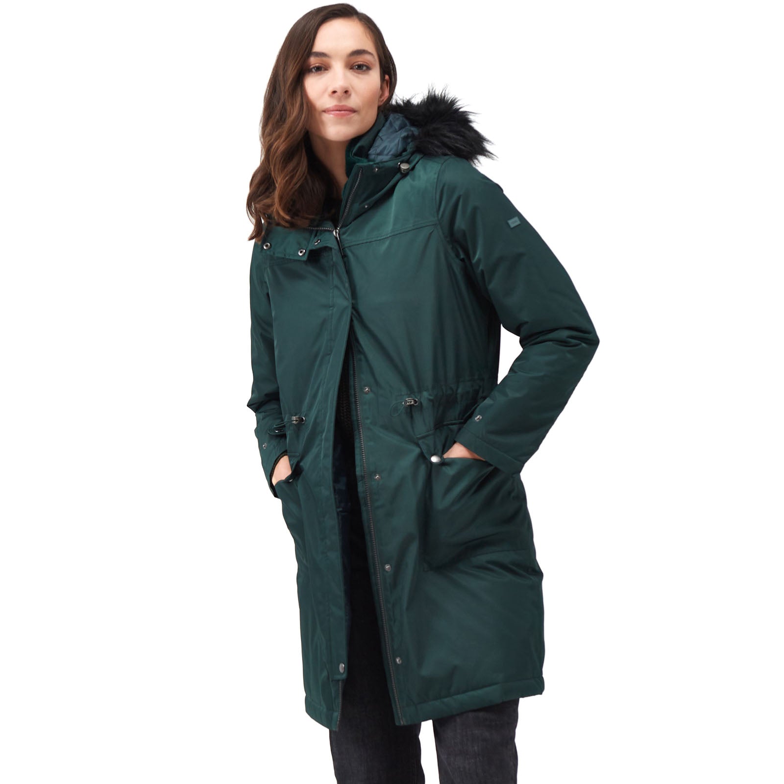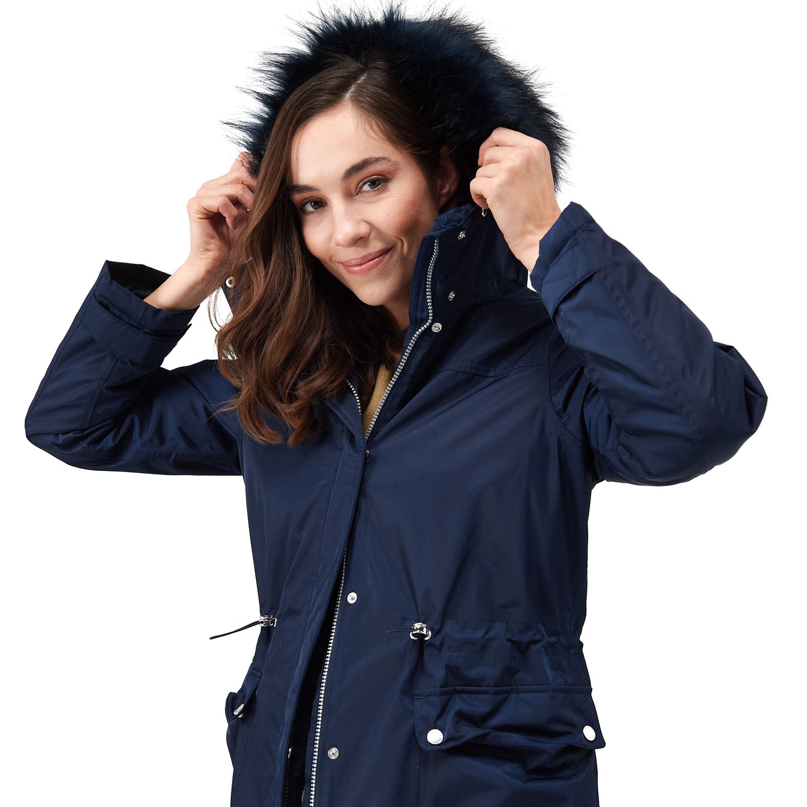 • Grown on hood with adjusters and luxury high pile faux fur trim