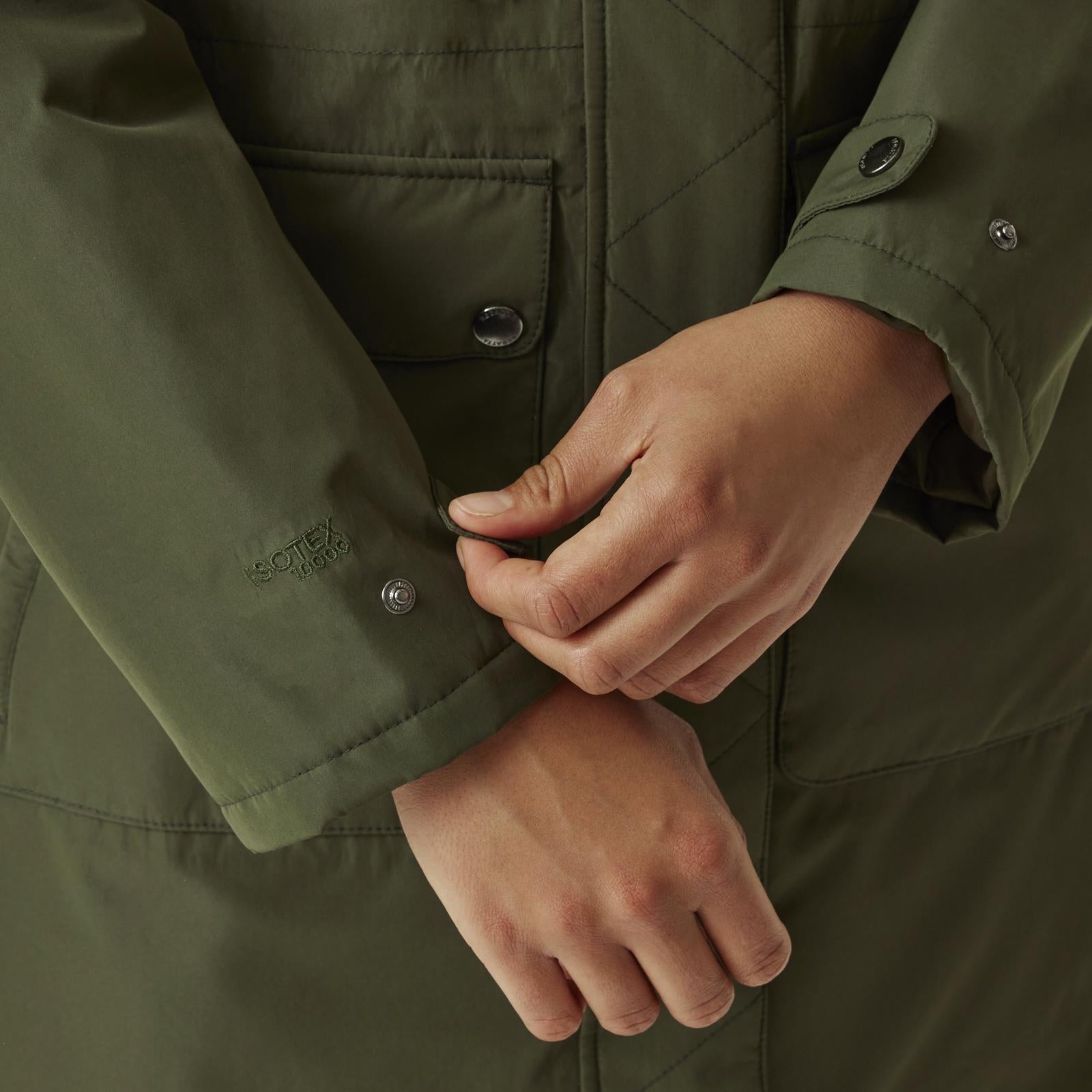 • Waterproof and breathable Isotex 10,000 recycled peached polyester fabric