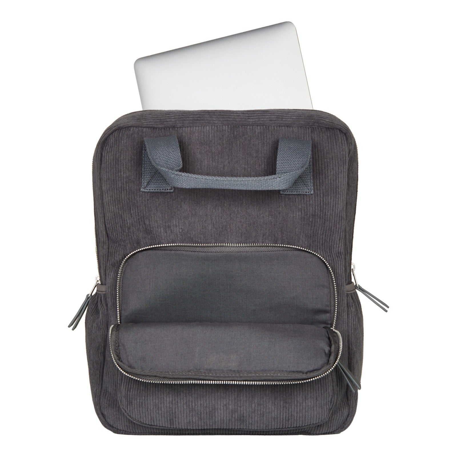 - 1 main zipup compartment, Padded laptop sleeve, 1 zip-up front pocket, 2 exterior side water bottle pockets