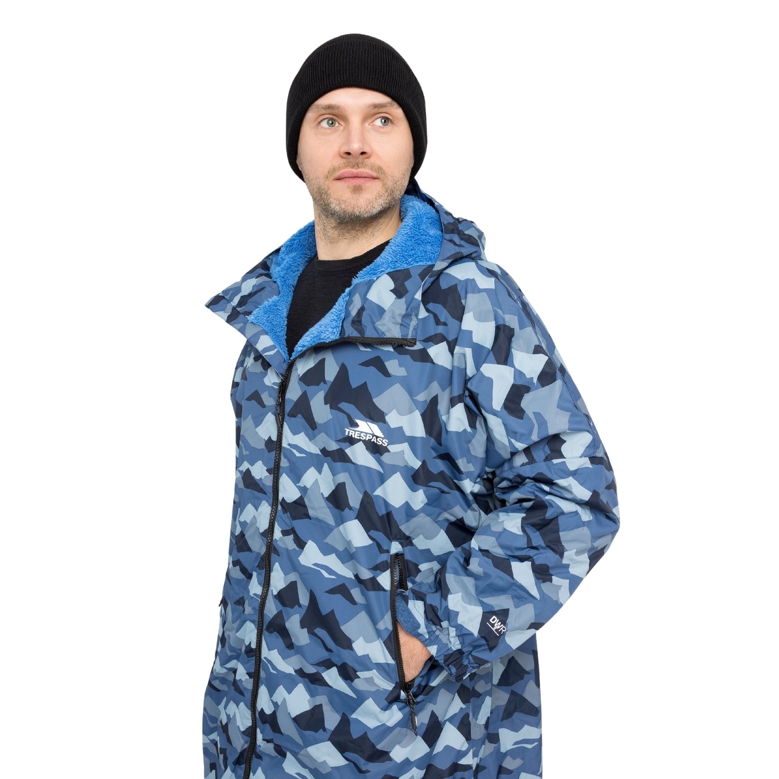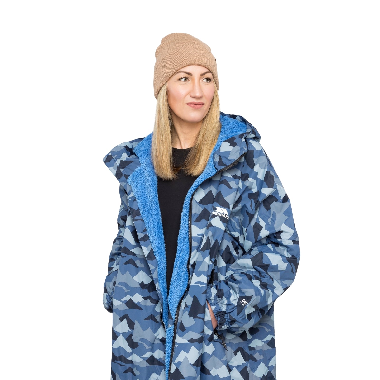 Stay warm, dry, and comfortable after any outdoor adventure with the Trespass Havelock Waterproof Changing Robe, Designed for swimmers, surfers, and outdoor explorers, this waterproof and windproof robe features a Tres-Tex® outer shell with taped seams for full weather protection.The thick fleece lining keeps you cosy and helps you dry off quickly, while the oversized fit allows easy, discreet changing anywhere. A two-way zip, adjustable hood and cuffs, and fleece-lined pockets make it practical, warm, and stylish.Perfect for open-water swimming, camping, paddleboarding, or simply staying dry on rainy days.