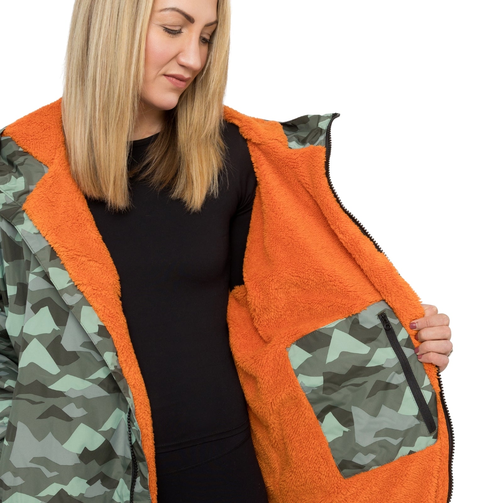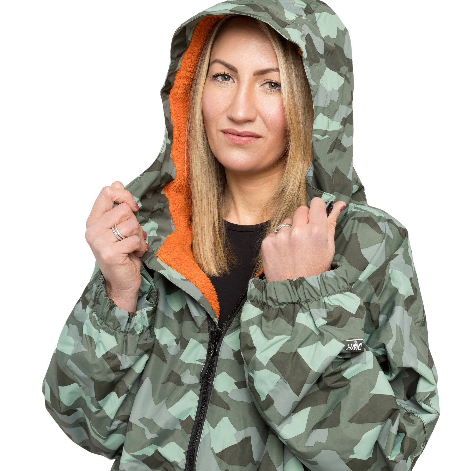 - Fleece lined hood which features a peak to keep your head warm and dry