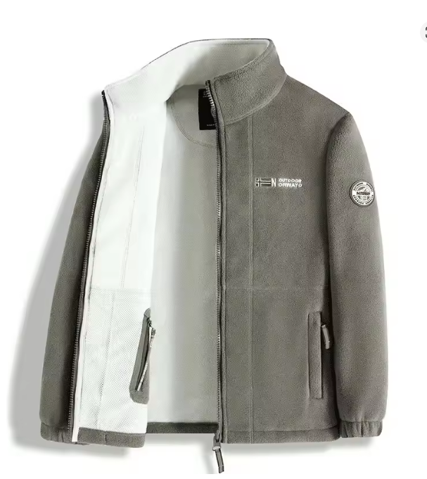Letter Embroidery Fleece Jacket, Regular Fit Casual Long Sleeve Zip Up Jacket for Fall & Winter, Men's Outerwear for Outdoor Activities