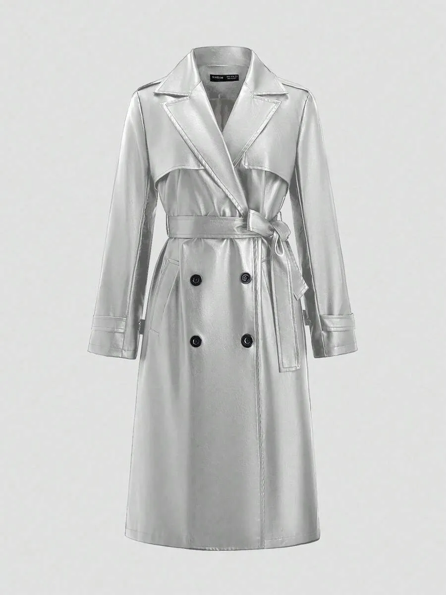 Women's PU Leather Mid-Length Casual Jacket, Fitted Style, All-Season Wear, Elegant Daily Commuting Outerwear, Includes Waist Belt