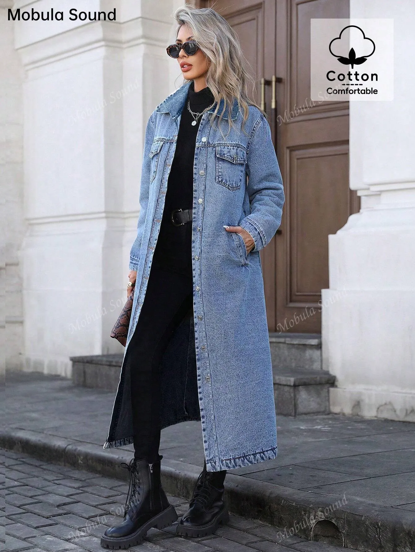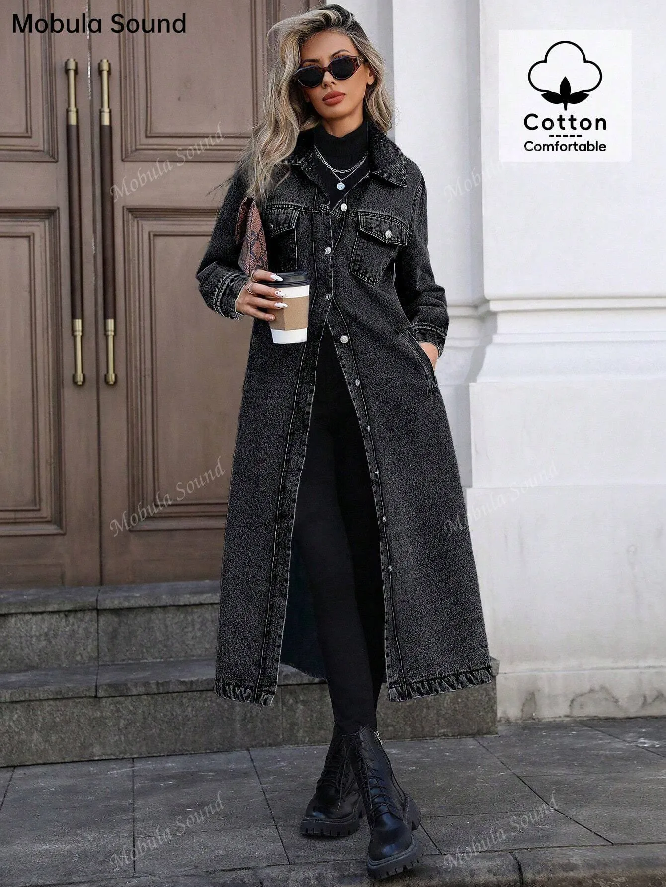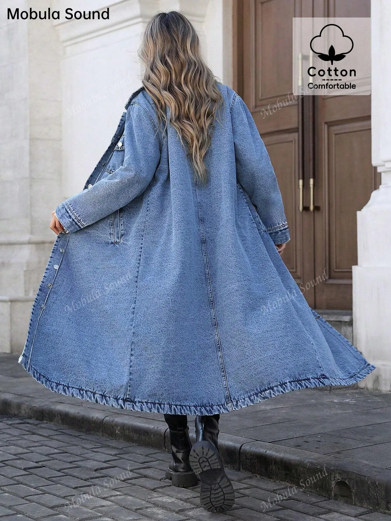 Women's Button Front Denim Coat, Elegant Casual Long Sleeve Denim Jacket for Spring & Fall, Women's Clothing for Daily Wear, Autumn