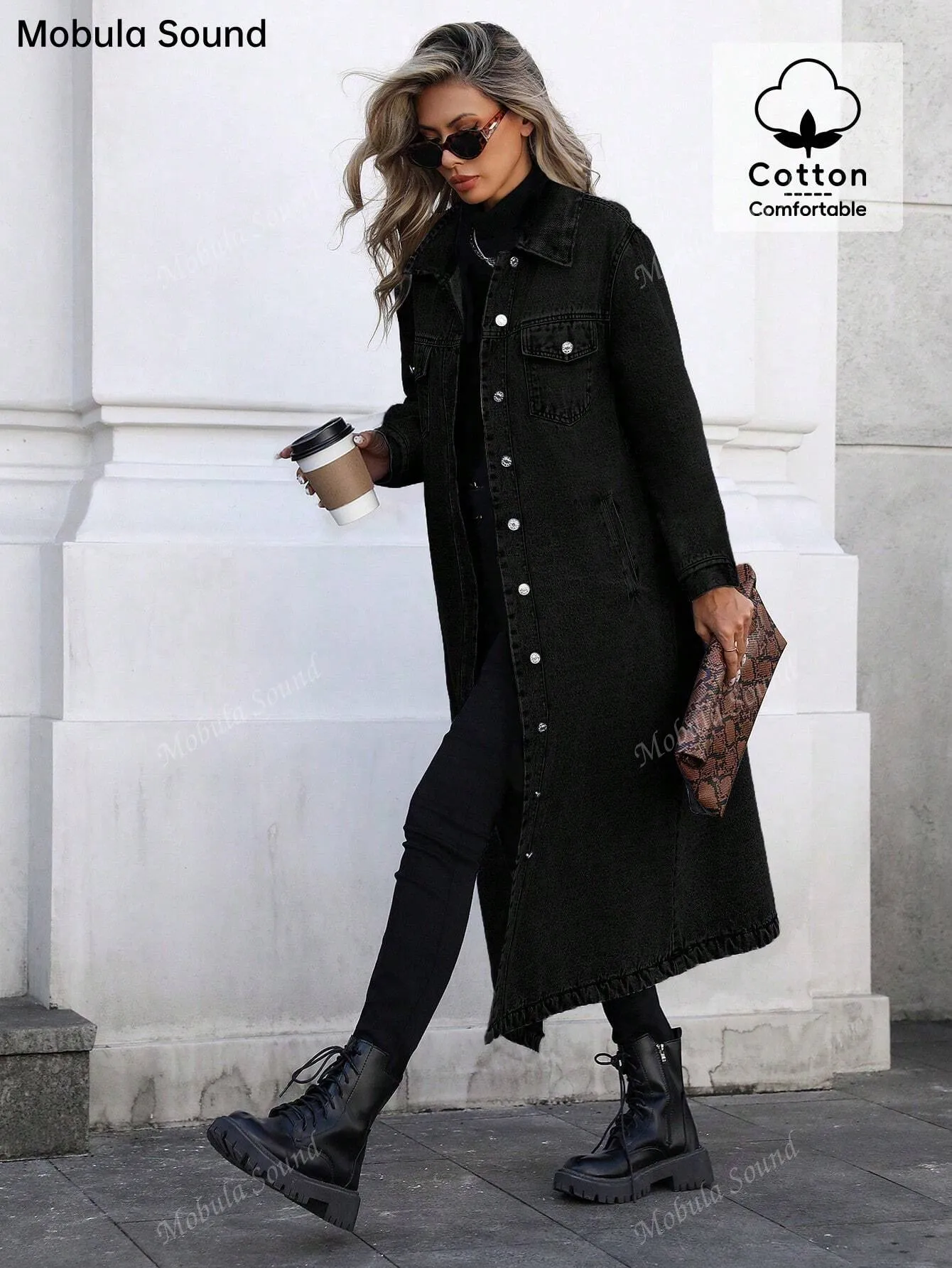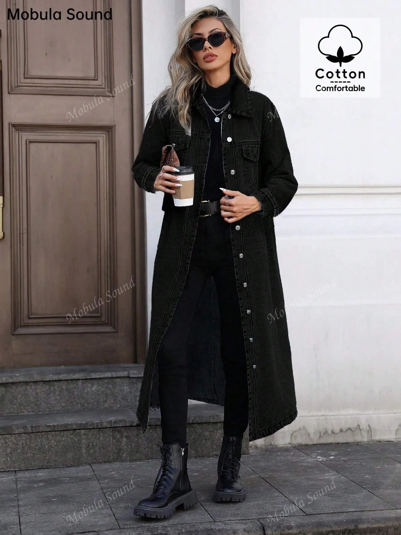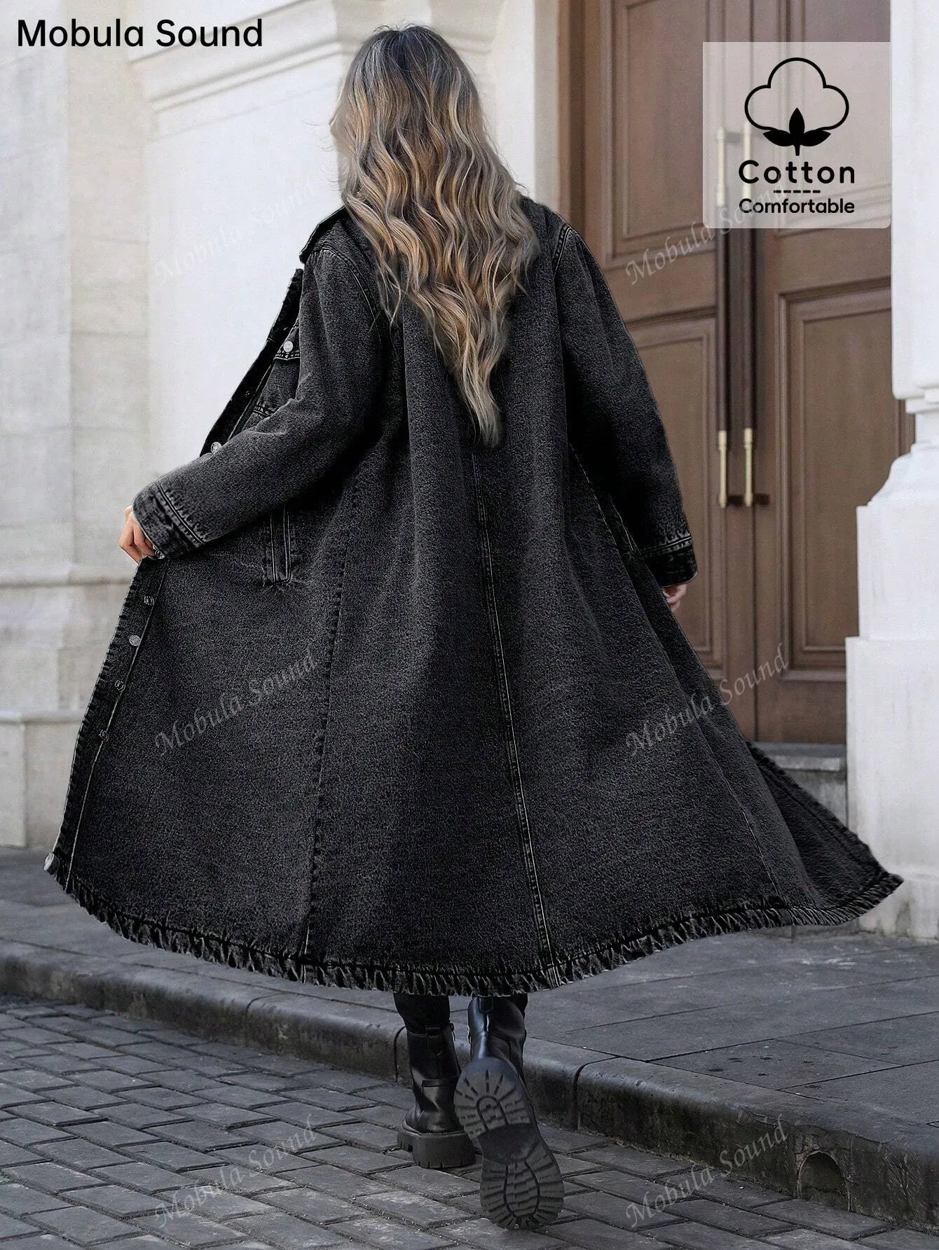 Women's Button Front Denim Coat, Elegant Casual Long Sleeve Denim Jacket for Spring & Fall, Women's Clothing for Daily Wear, Autumn