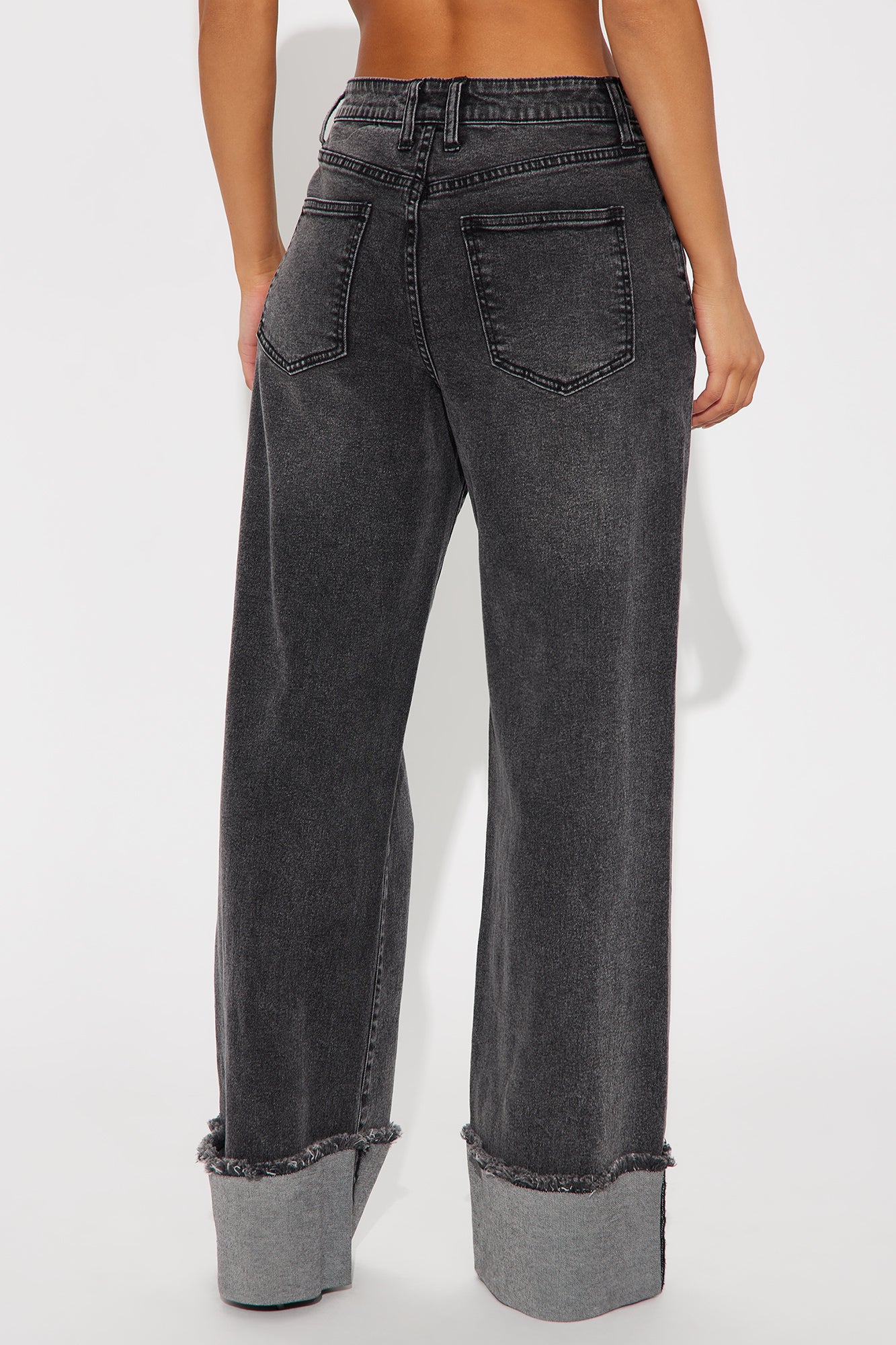 All The While Cuffed Wide Leg Jeans - Black Wash