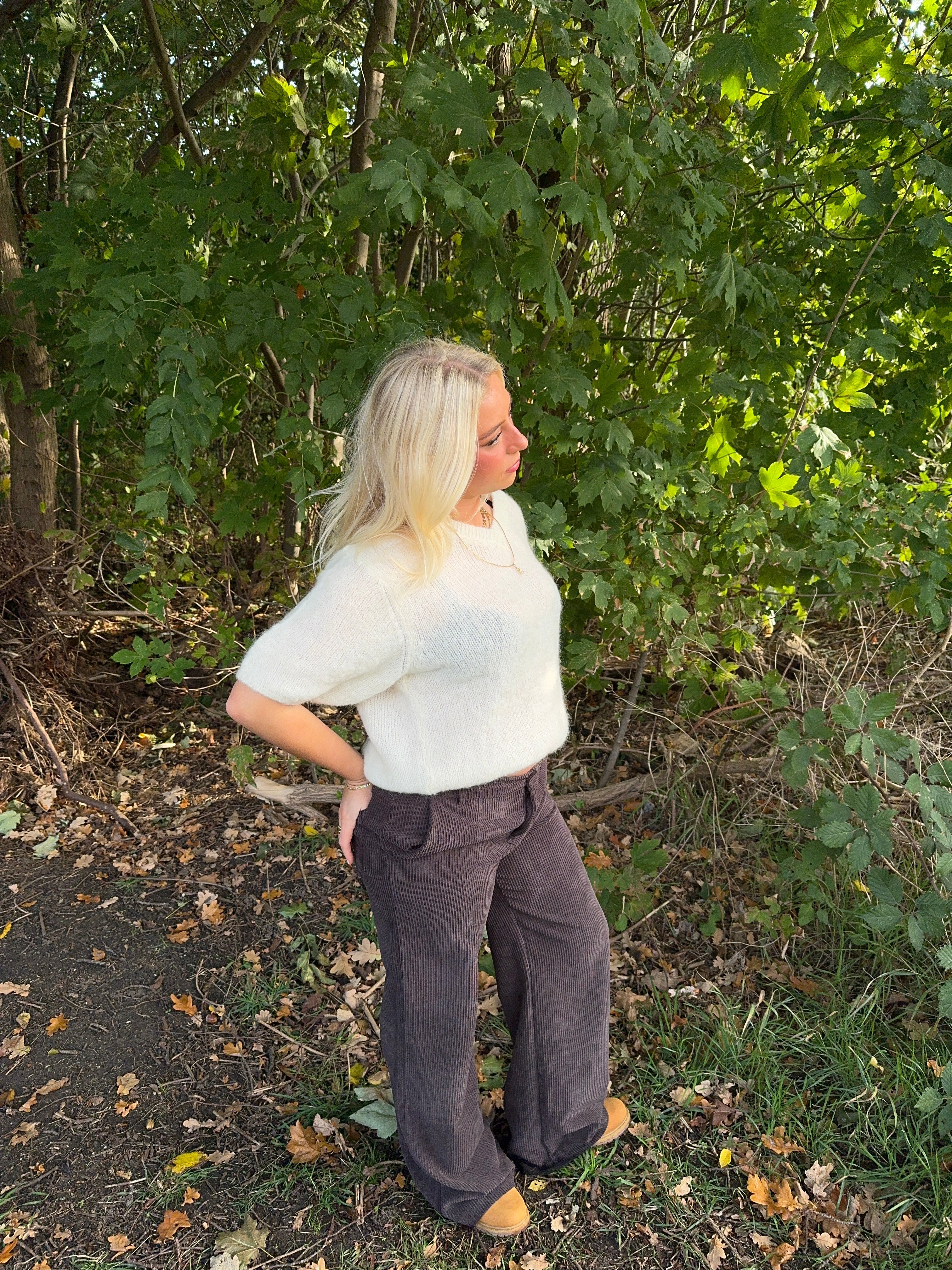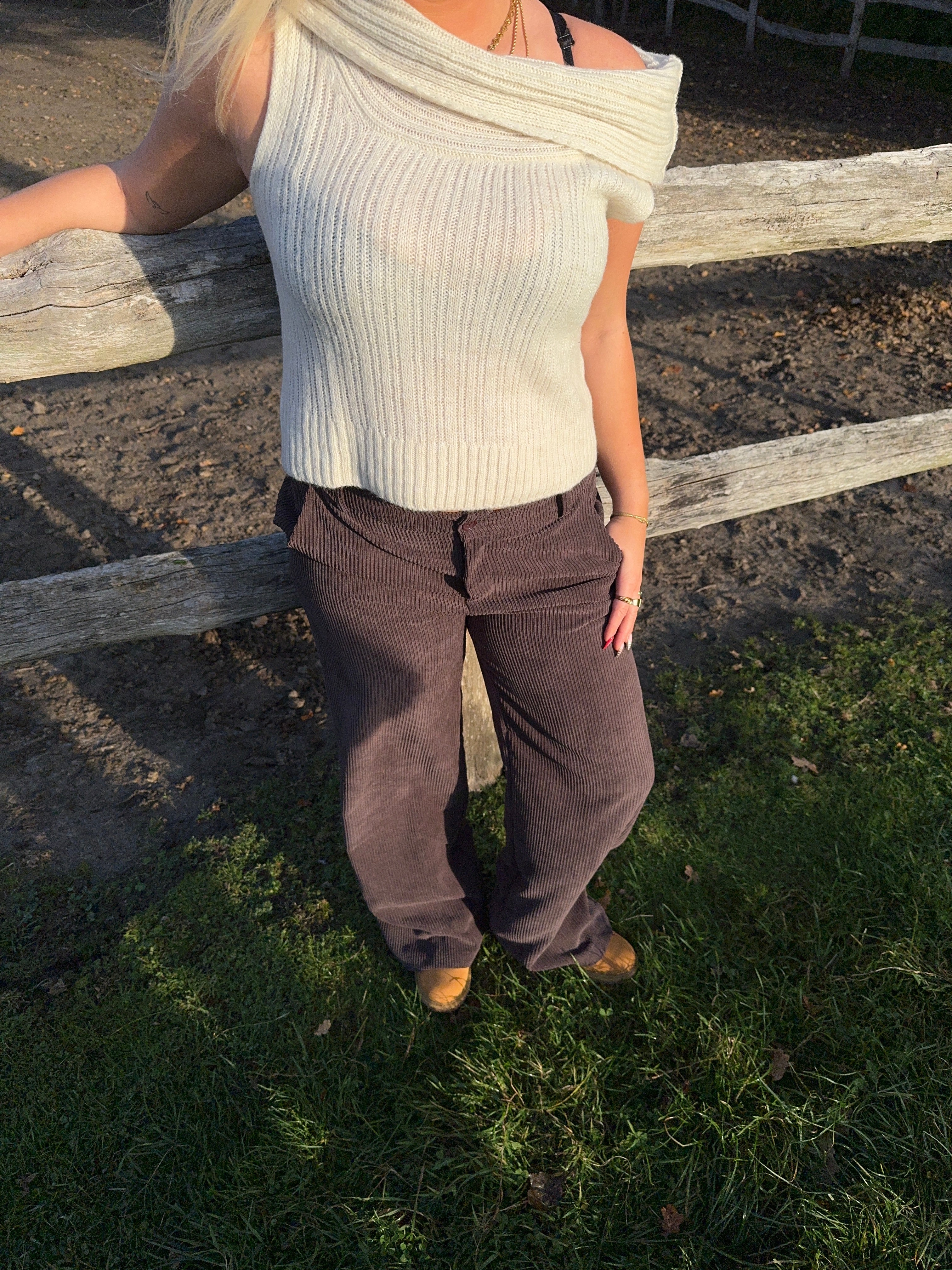 These corduroy pants have a straight fit and offer both comfort and style. With belt loops and a loose fit, they are ideal for both casual and more formal occasions. The pants feature practical side pockets and fasten with a button and zipper. Add these timeless velvet pants to your wardrobe for a luxurious look.