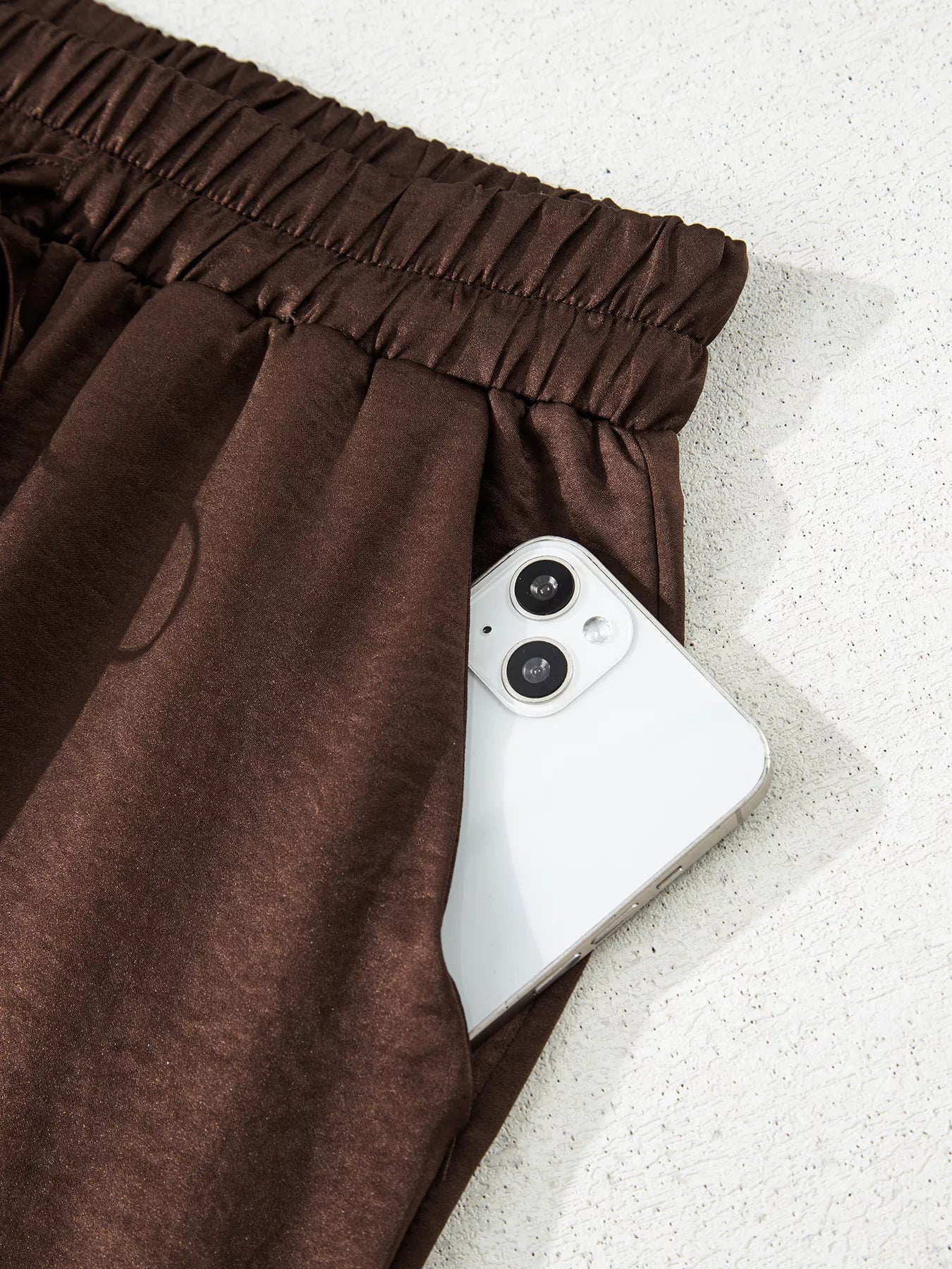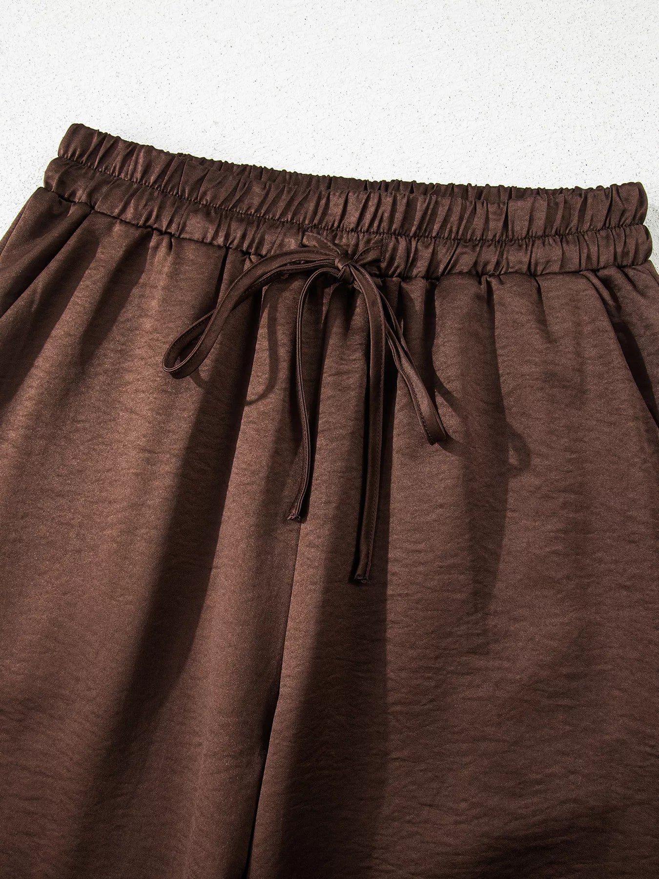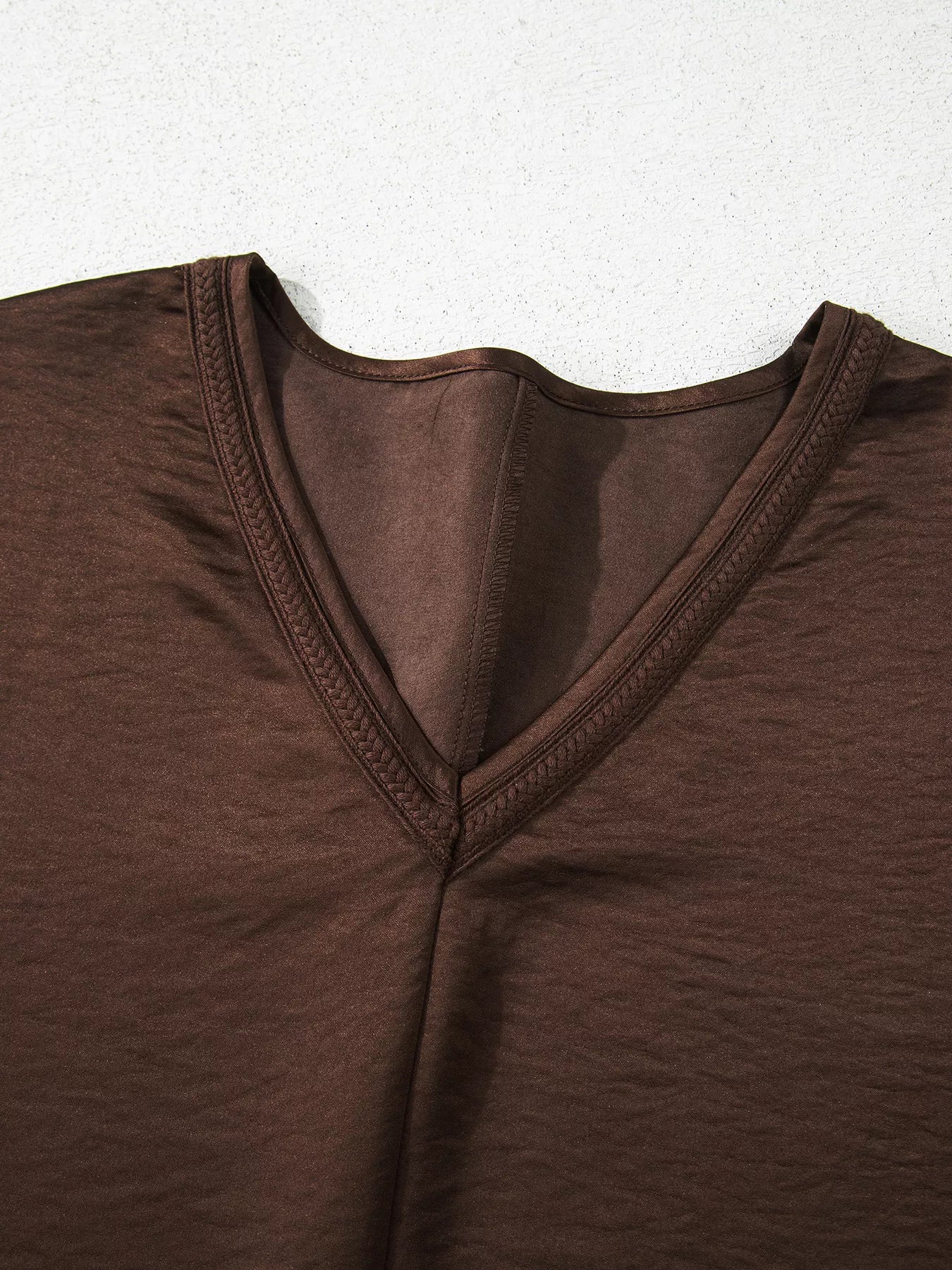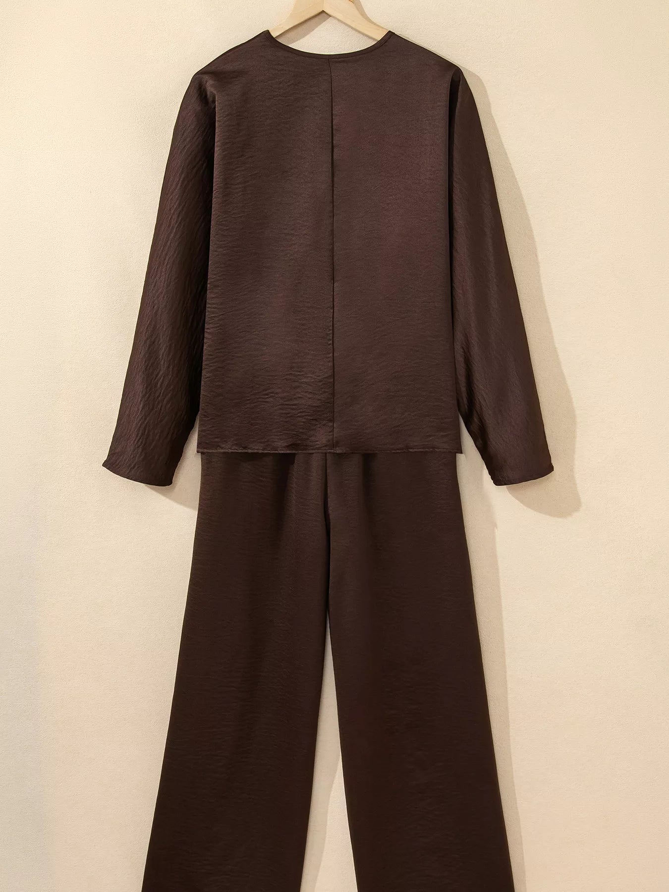 Braided V Neck Long Sleeve Loose Top and Drawstring High Waist Pants 2pcs Outfit