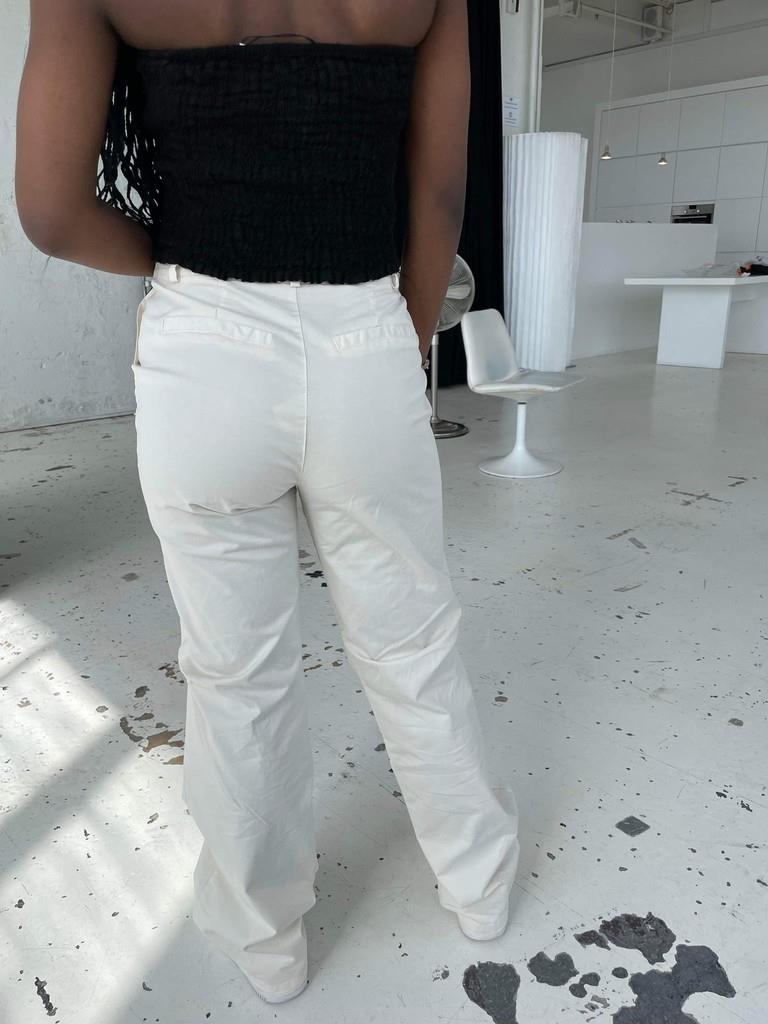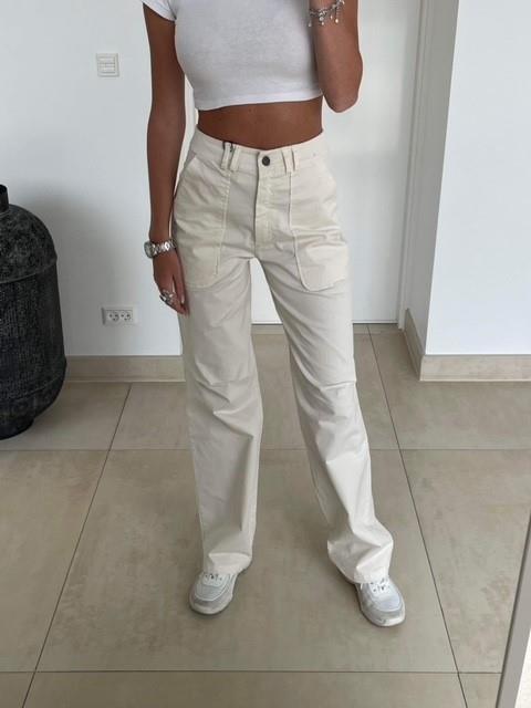 Camille canvas pants with large front pockets as welltwo cheat pockets on the back. The trousers have belt loops and are closed with zipper and button.Colour: off whiteMaterial: Cotton and elastaneThe model wears a size xxs