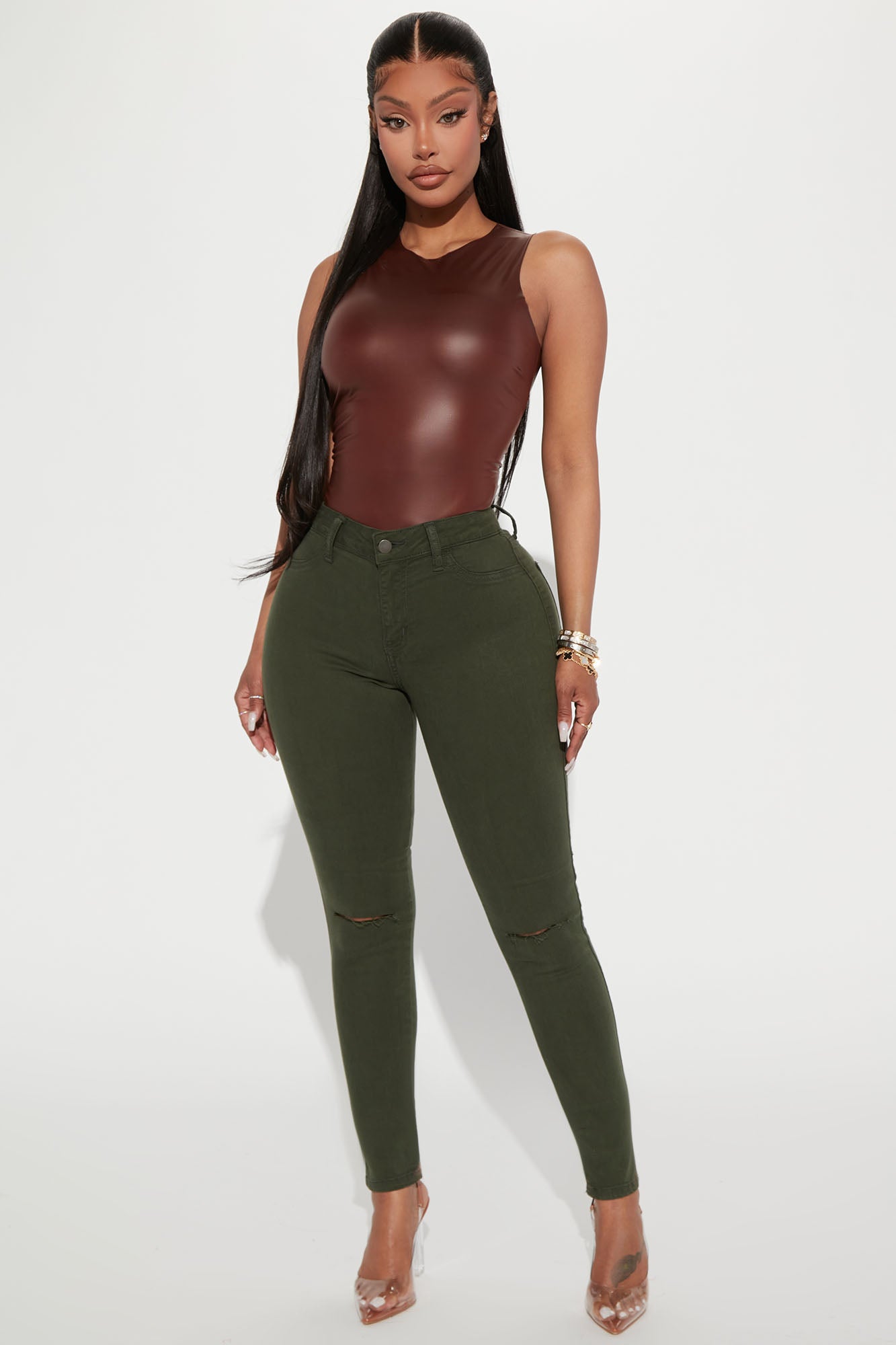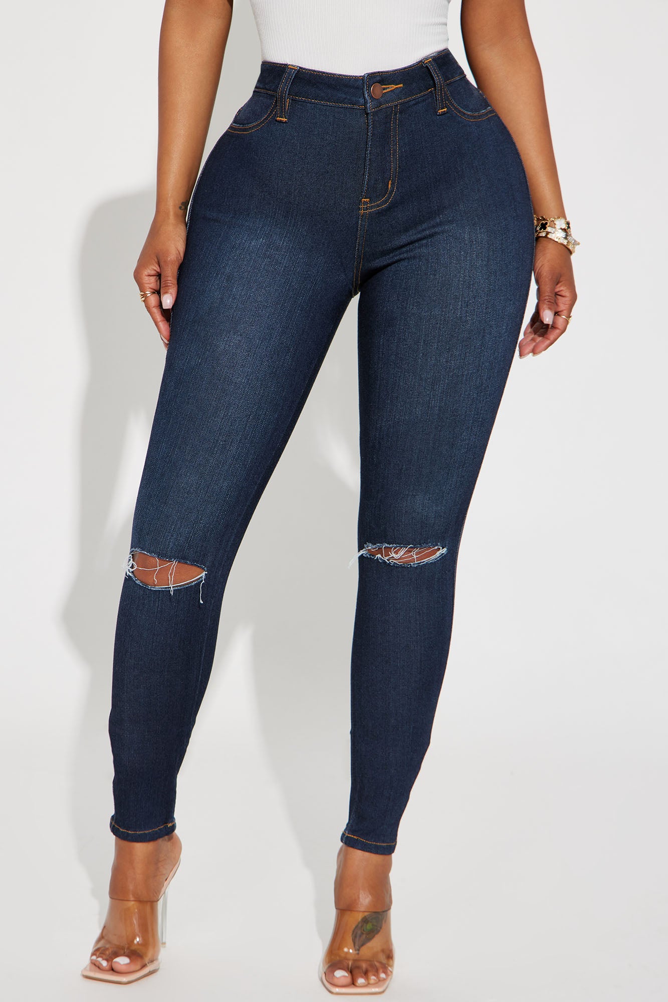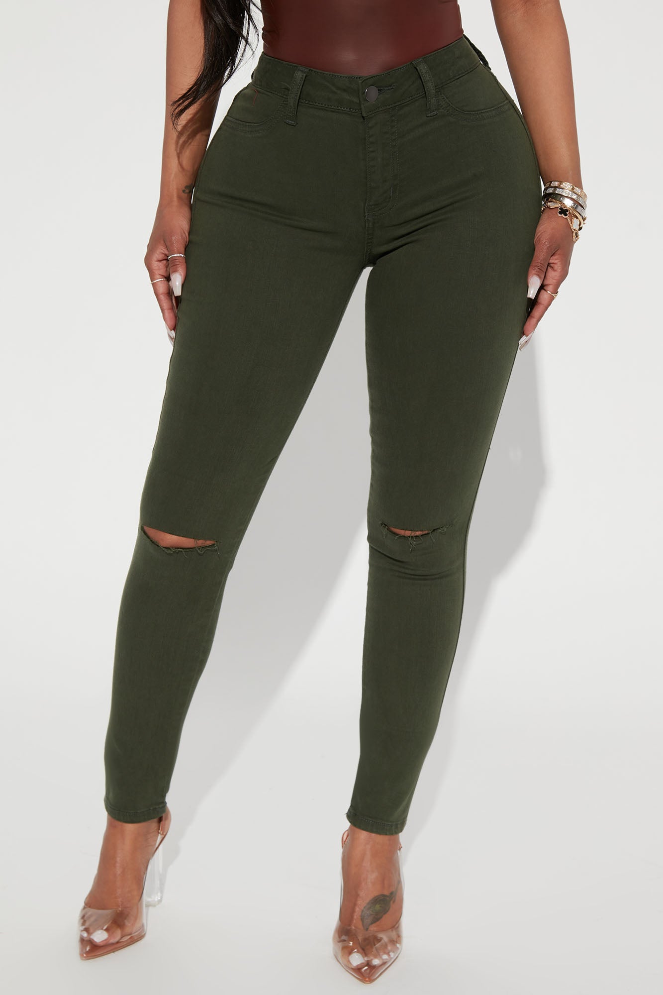 Made in a super soft, stretchy fabric, our Canopy Jean is cut in a mid-rise skinny fit and features functional back pockets and two knee slits. Available in a variety of washes and colors.Available In Black, Dark Denim, Medium Wash, Olive And White.Available In Regular 30" Inseam, Tall 33" Inseam, & Petite 27" InseamSkinny JeanHigh StretchSlit KneeFunctional Back Pockets9.5" Mid RiseDisclaimer: Due To the Specialized Wash & Distressing Process, Each Garment Is UniqueSelf: 59% Cotton 33% Tencel 6% T400 2% LycraImported
