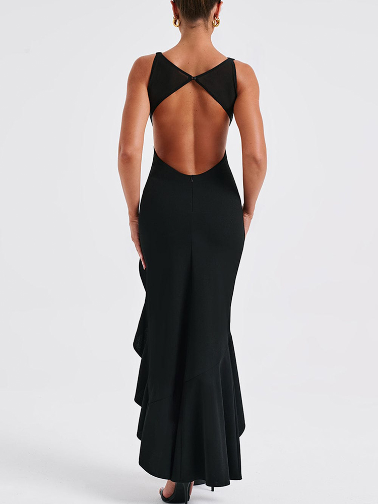 Wear our backless slim fitting dress and showcase your curves. This dress is perfect for any party or special occasion, featuring an elegant ruffle design and sexy slit design, showcasing drama. The tight fit gives you confidence and a sense of fashion throughout the night.