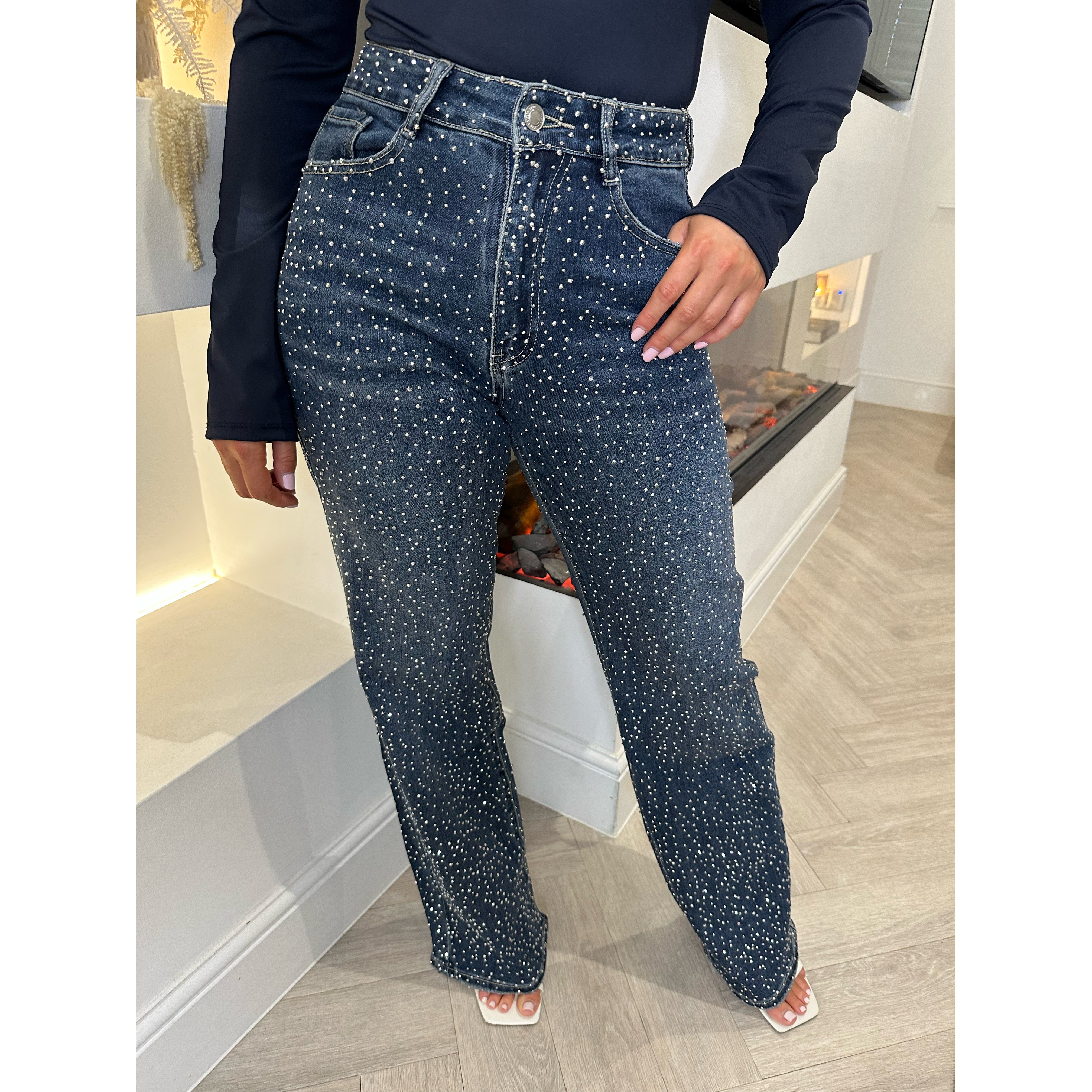 Dark Denim Scatter Diamanté Dad Fit Jeans