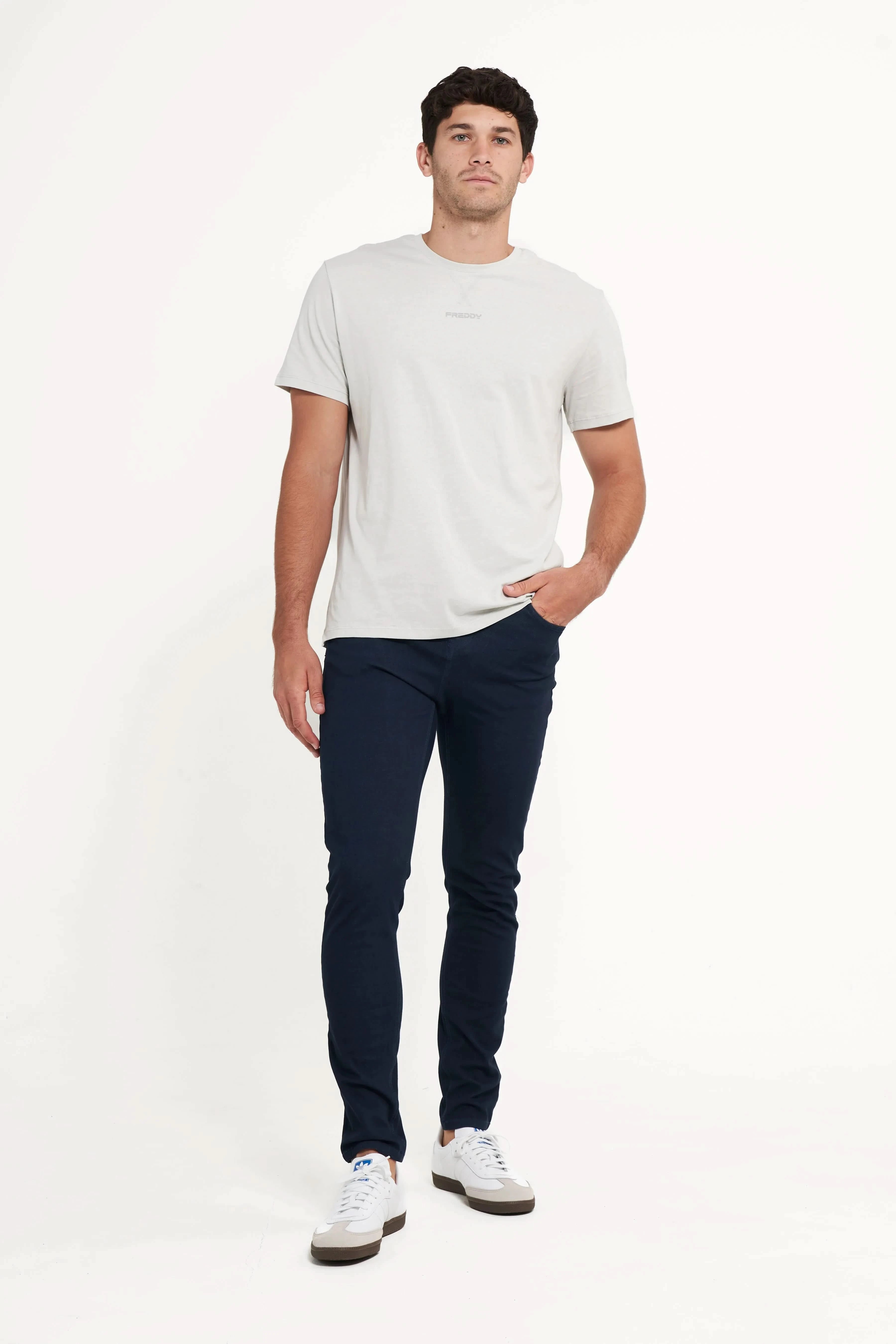 Timeless, versatile, and ultra-comfortable. These Deep Navy jeans are made with 4-way stretch fabric, deep pockets, and a tailored skinny fit. Clean lines and tonal navy stitching make them a staple you’ll wear again and again.
