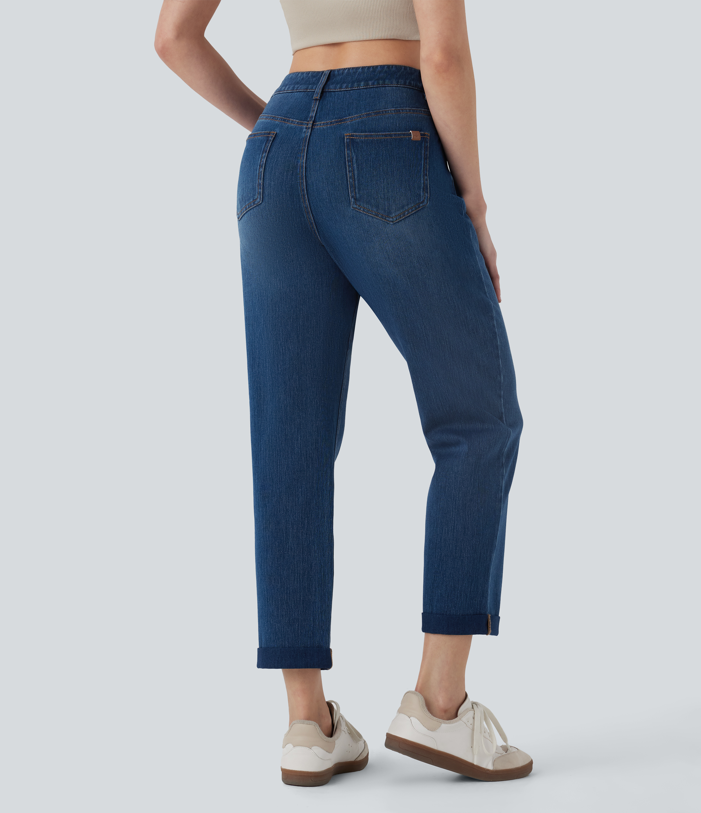 Halara FlexTM Mid Rise Straight Leg Washed Casual Jeans with Pockets