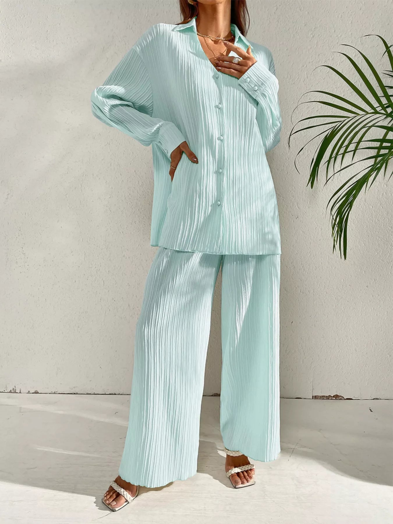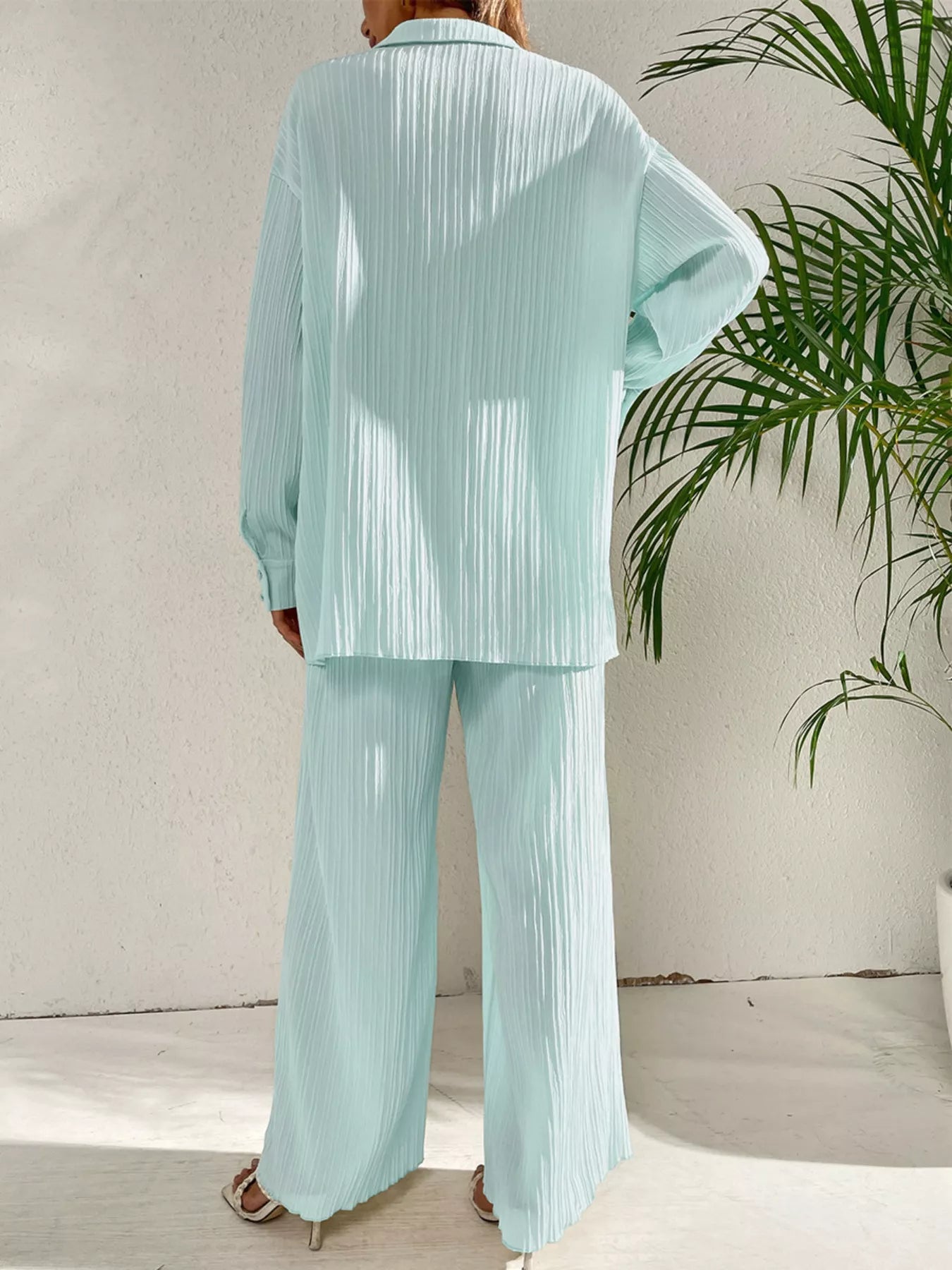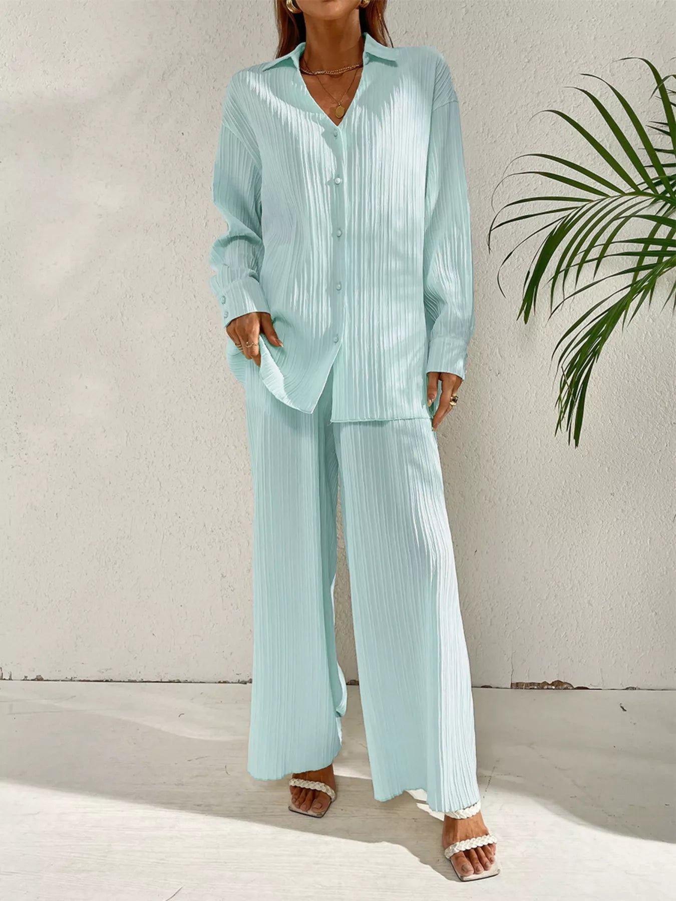 Long Sleeve Shirt & Wide Leg Pants Set