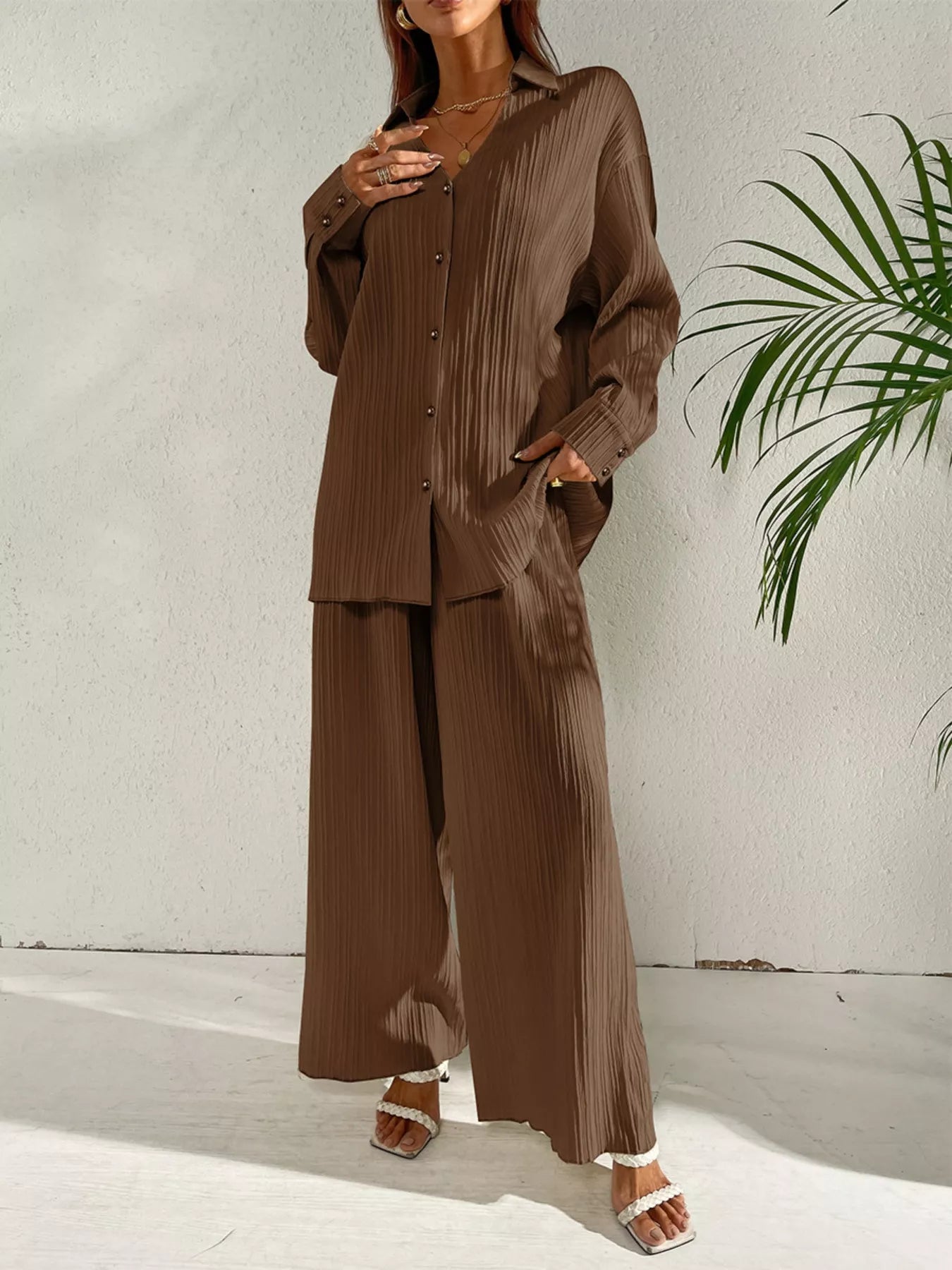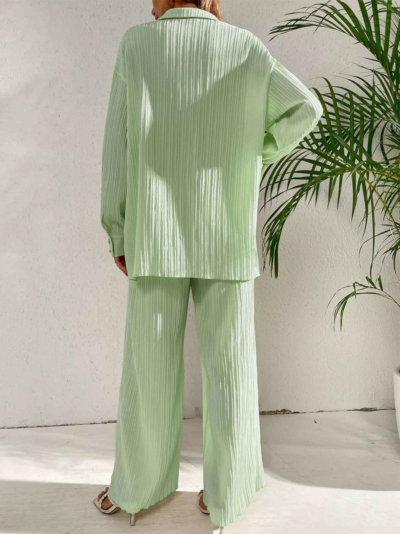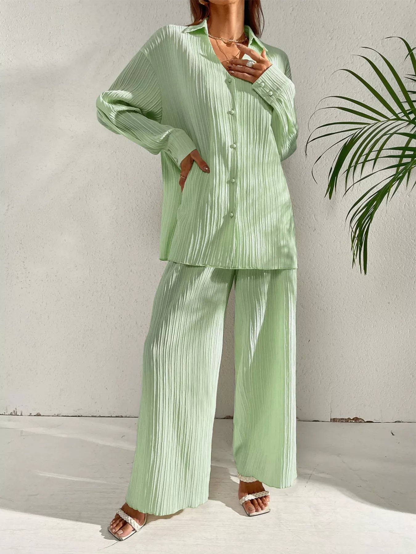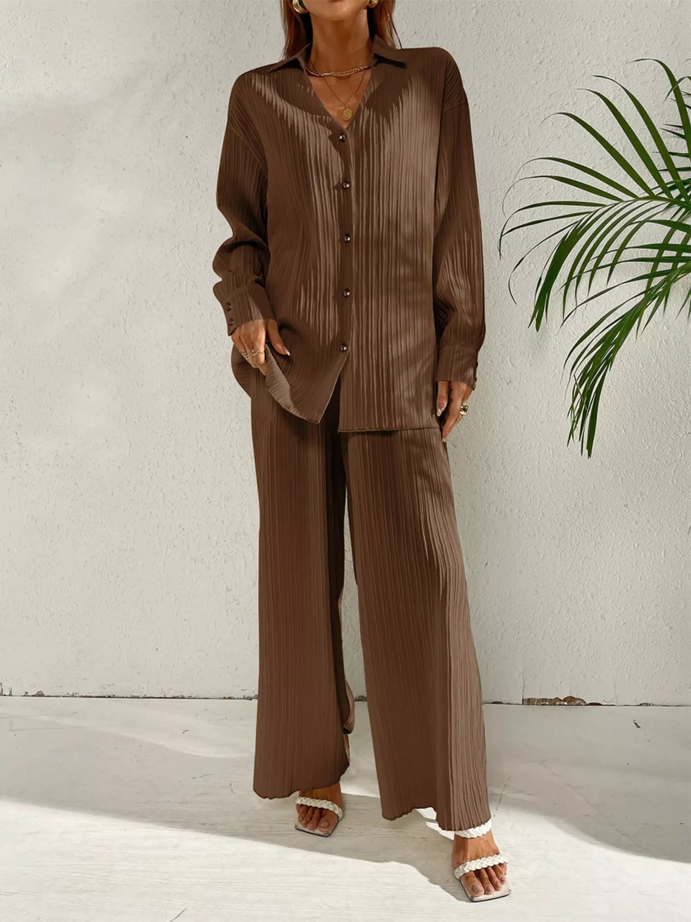 Long Sleeve Shirt & Wide Leg Pants Set
