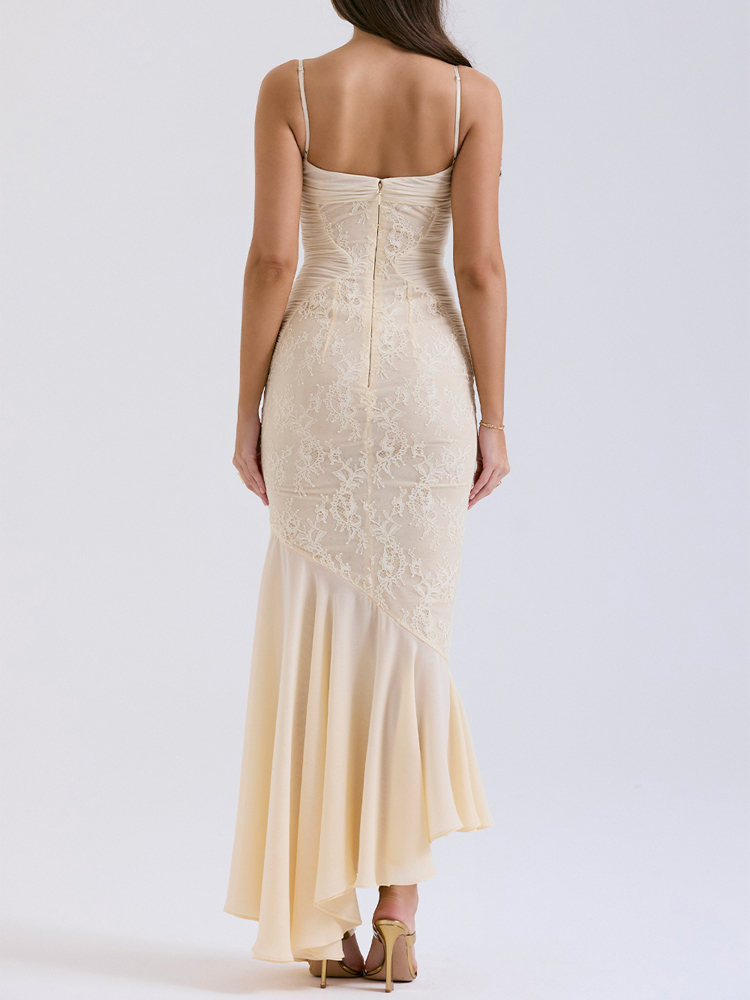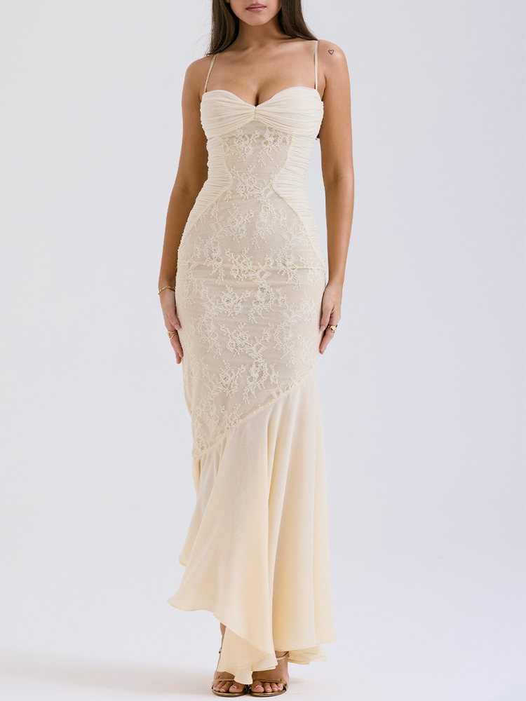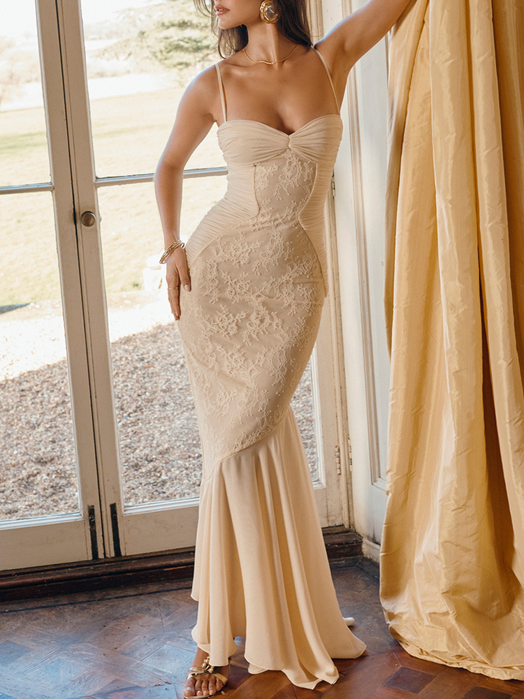 This Mesh Lace Splicing Bodycon Mermaid Maxi Dress is perfect for any party. The delicate lace adds a touch of elegance while the bodycon silhouette accentuates your curves. Made from lightweight mesh fabric, this dress is comfortable and breathable, making it an ideal choice for all-day wear.