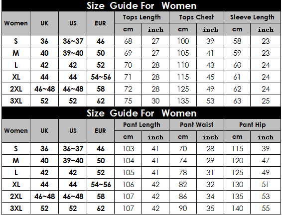 | Women | Tops Length | Tops Chest | Sleeves Length |