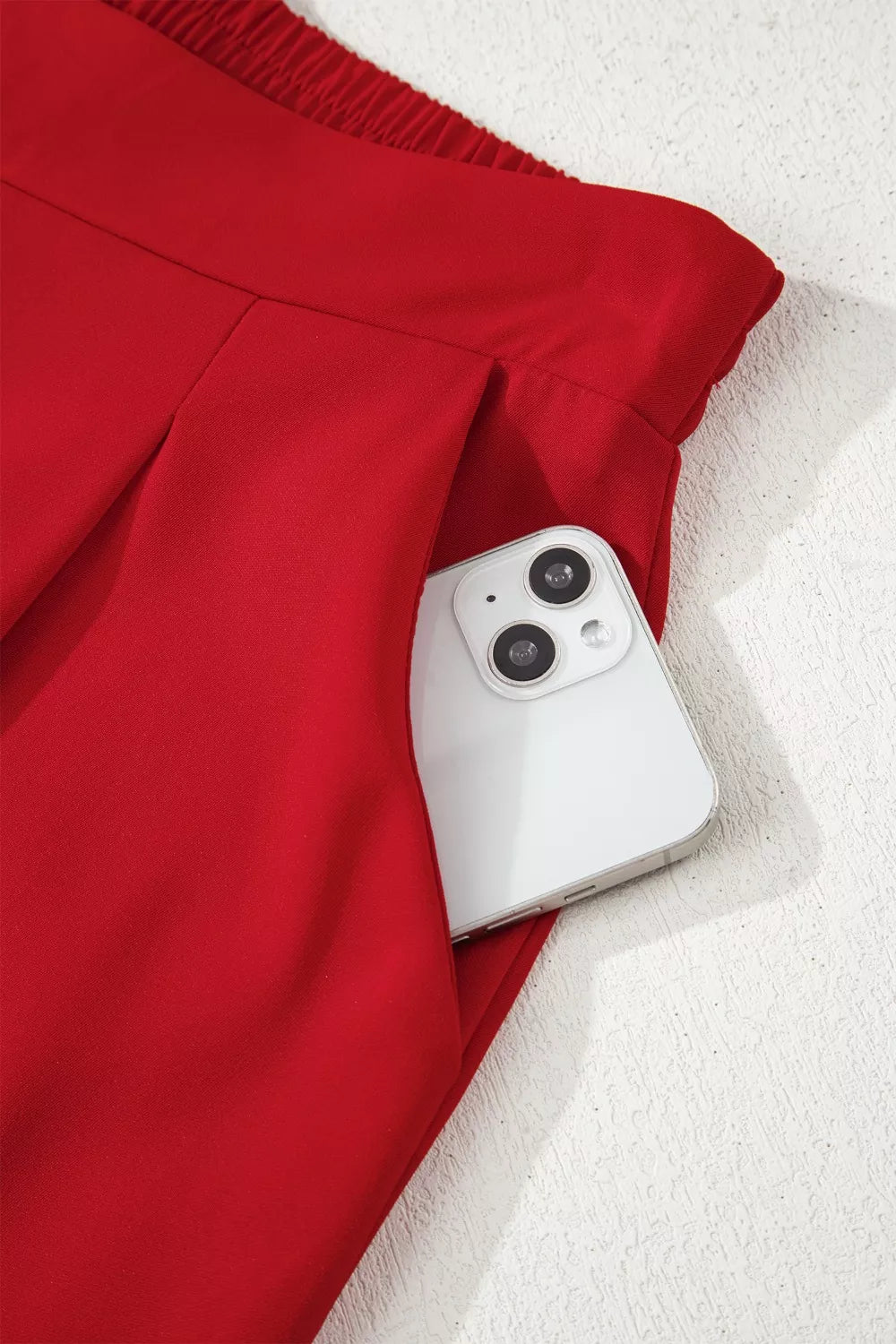 Pleated Detail Pull On High Elastic Waist Loose Straight Pants