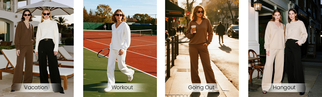 • DETAILS:Womens Winter Outfits;Two Piece Sets for Women;Sweatsuits Women 2 Piece Outfit;Matching Sets Women Clothing;V Neck Tracksuit for Women;Drawstring Wide Leg Sweatpants Women;Knit Casual Outfits for Women;Drop Shoulder Sweatsuit for Women