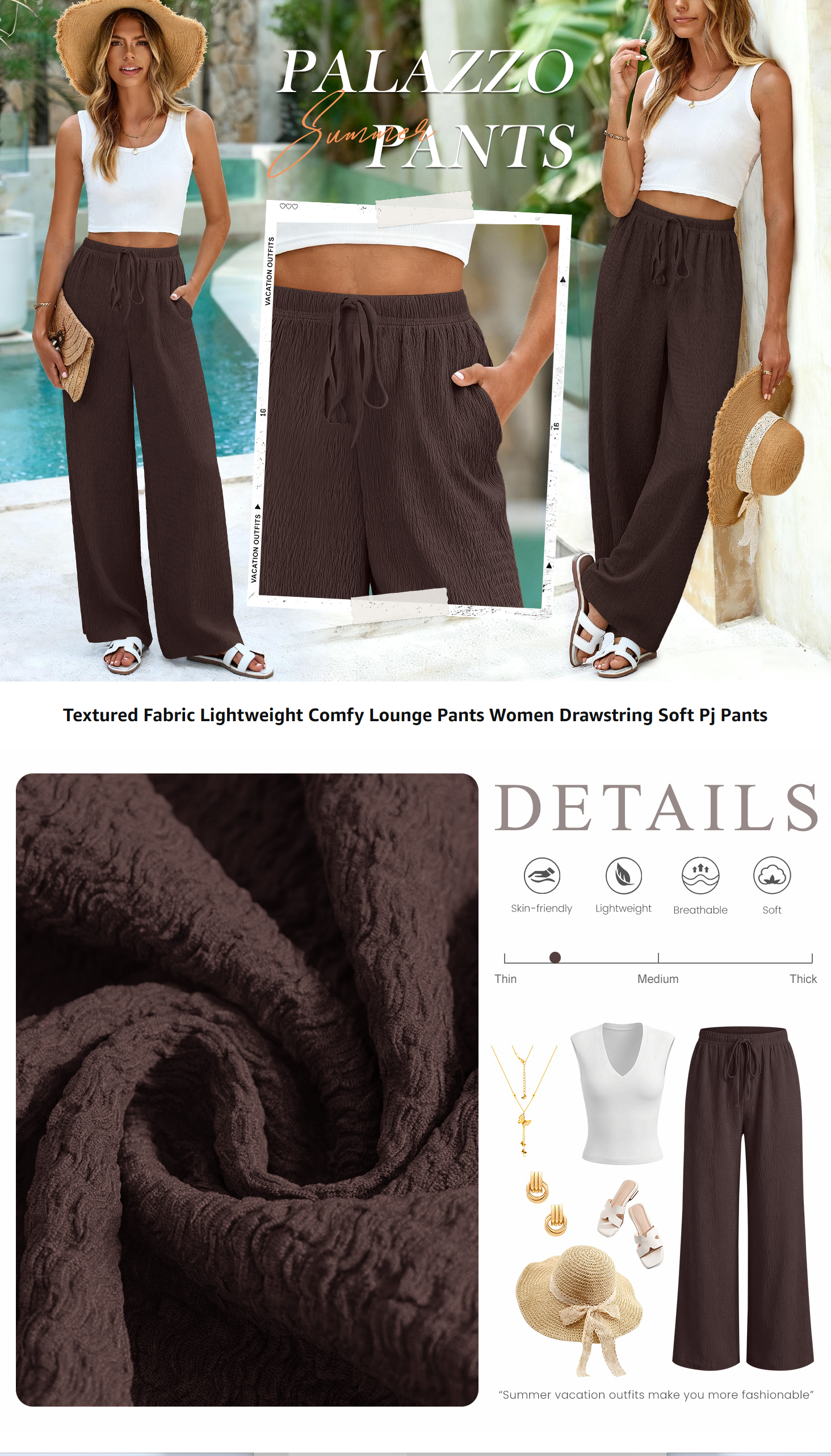 - Material: Our drawstring wide leg pants woman outfits is made of a premium lightweight and textured fabric for a soft, flowy feel that offers exceptional comfort and breathability, making these palazzo pants for women ideal for all-day wear as comfy casual, lounge or pajama pants