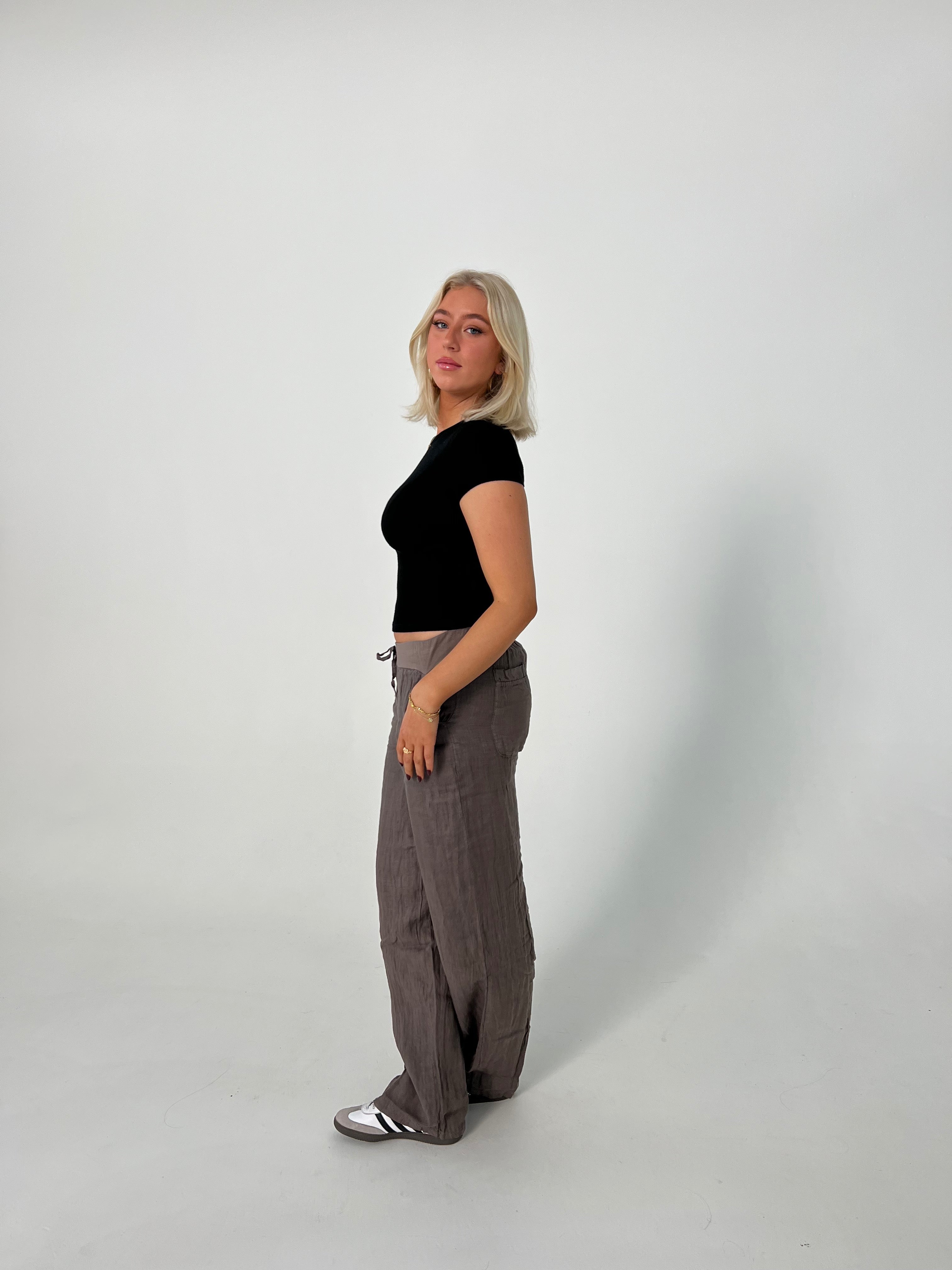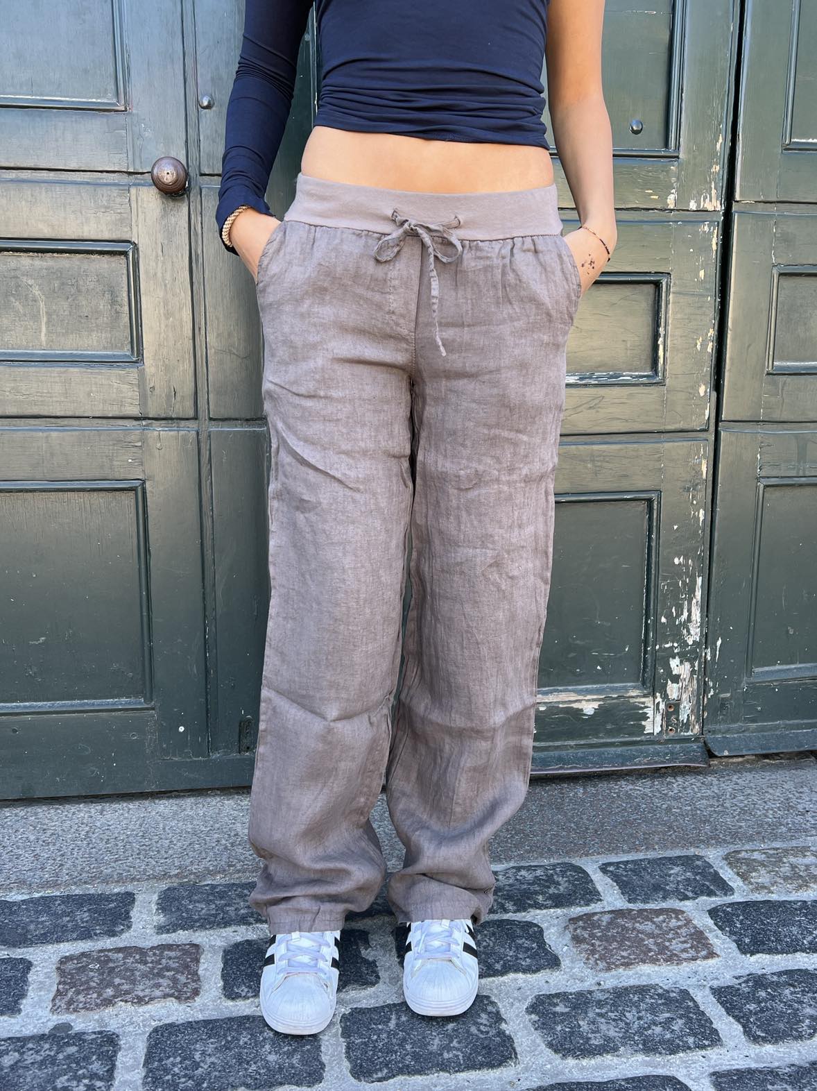 Straight fit linen pants with a double layer. We've added pockets on the sides and back for a unique look. In addition, our Angel pants have an elastic waistband hidden by cotton fabric and a drawstring for size adjustment. The perfect lightweight pants that can be styled up or down and both mid and low-waist!