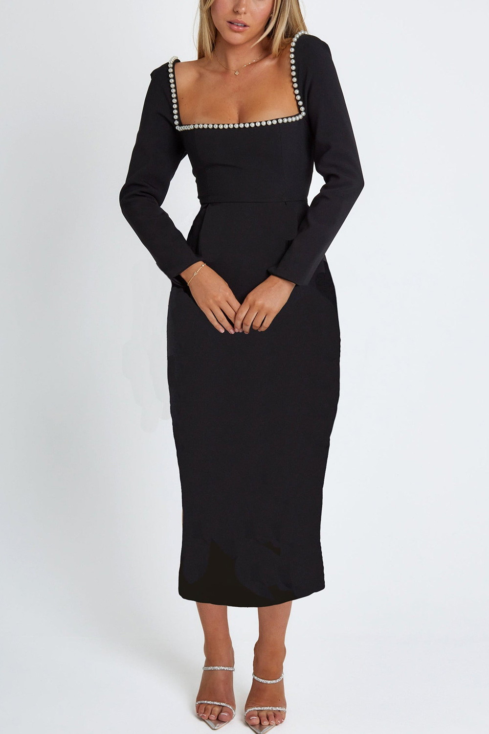 Shine as a wedding guest in this white square-neck mini dress adorned with pearl embellishments. Its elegant design and intricate detailing exude sophistication. The mini length adds a modern flair while the pearl embellishments elevate the look. Feel radiant and refined, captivating attention at any wedding celebration.
