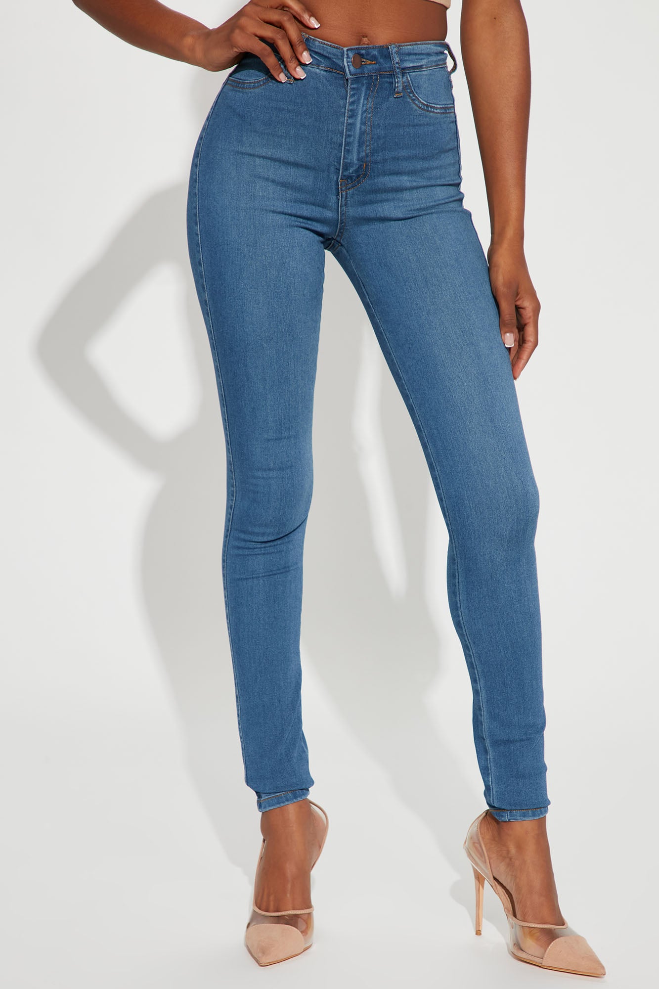 Available In Black, Khaki, Light Blue Wash, Medium Blue Wash And White.Available in Petite 28" Inseam, Regular 31" Inseam, & Tall 34" Inseam11" High RiseSkinny JeanHigh StretchFaux Front PocketsFunctional Back PocketsDisclaimer: Due To The Specialized Wash Process, Each garment Is Unique49% Rayon 32% Cotton 17% Polyester 2% SpandexImported