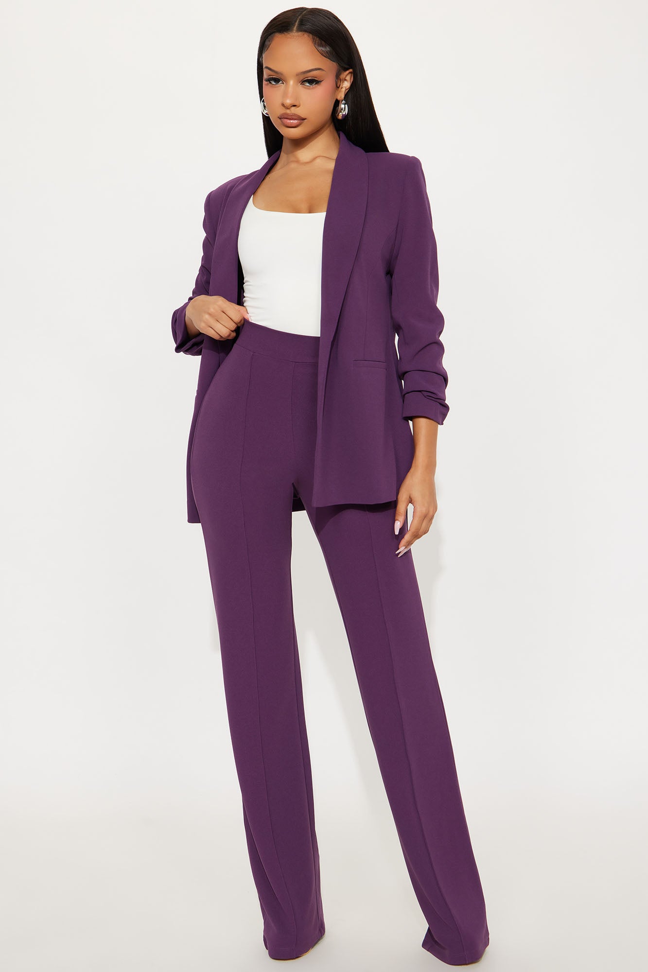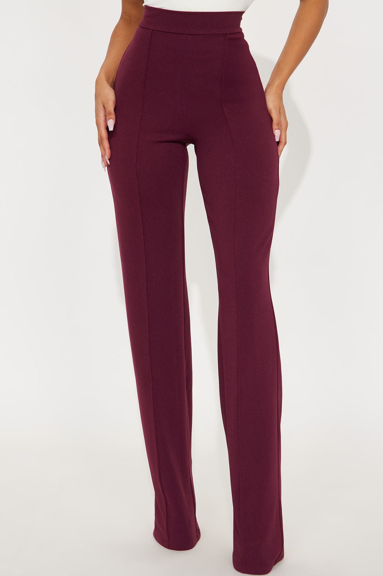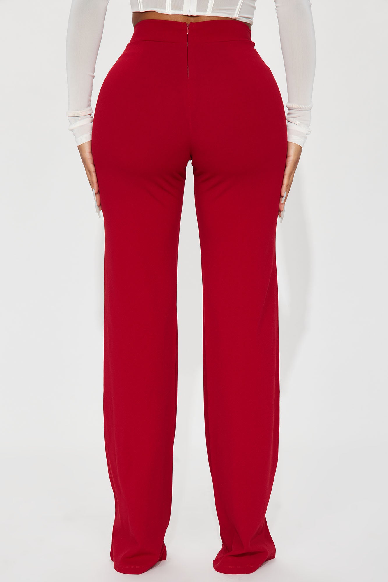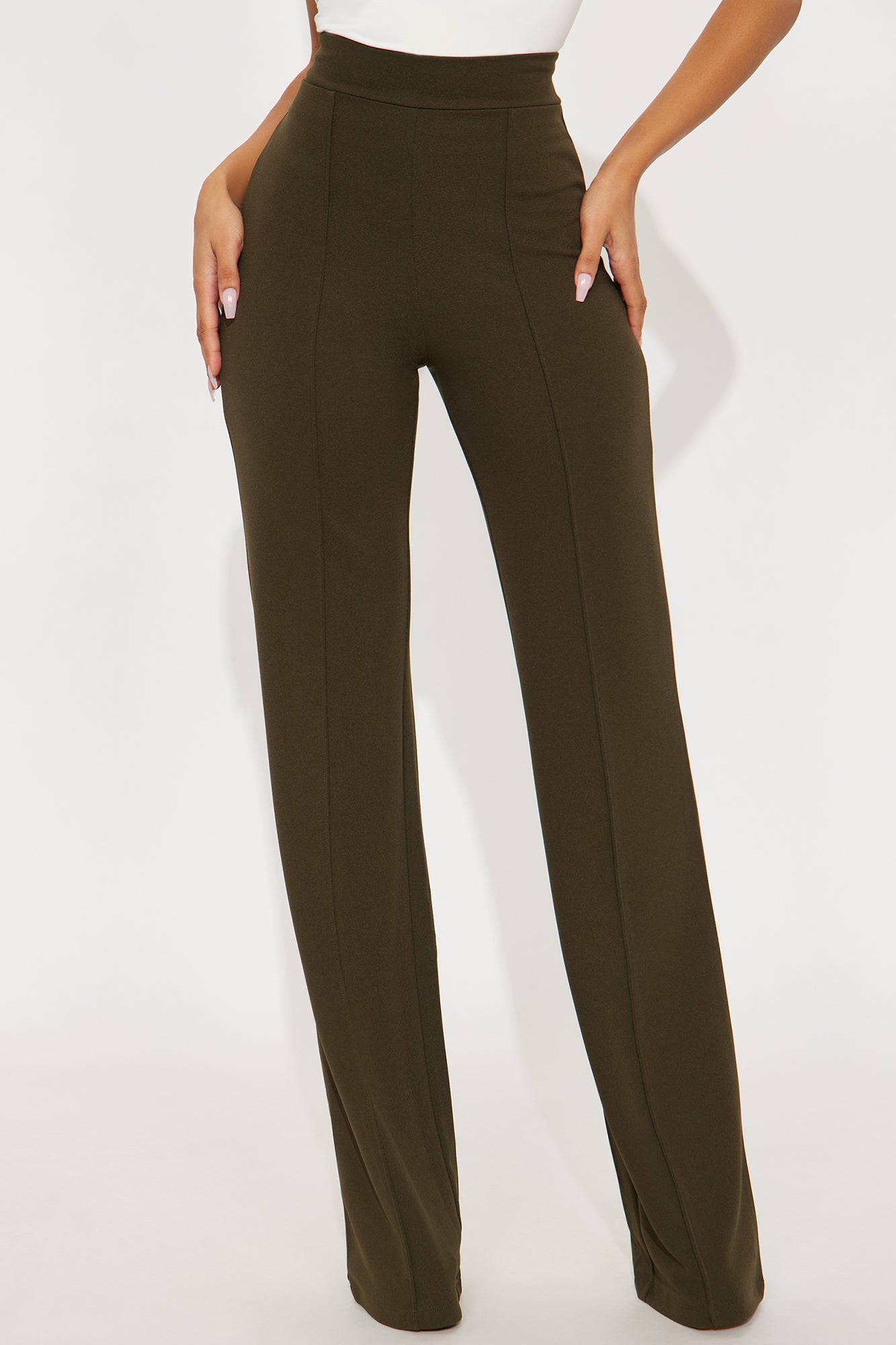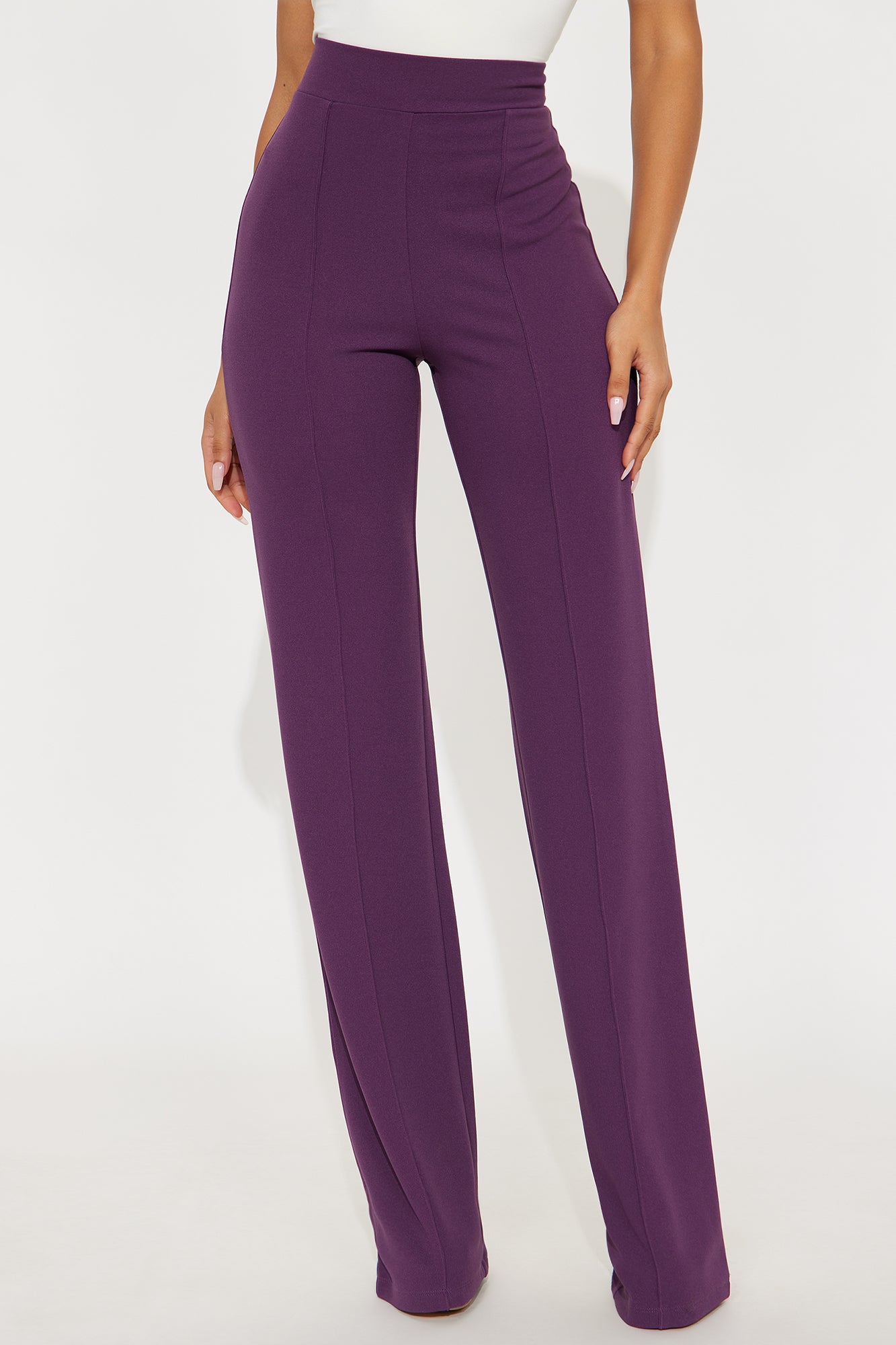 Available In Black, Burgundy, Charcoal, Chocolate, Hunter Green, Ivory, Mauve, Navy, Oatmeal, Olive 1, Plum, Red, Royal, Rust, Sage, Taupe And White.Available in Regular, Tall, and Petite InseamsTall: 36" InseamHigh RisePintuck FrontHidden Back ZipperStretch95% Polyester 5% SpandexImported