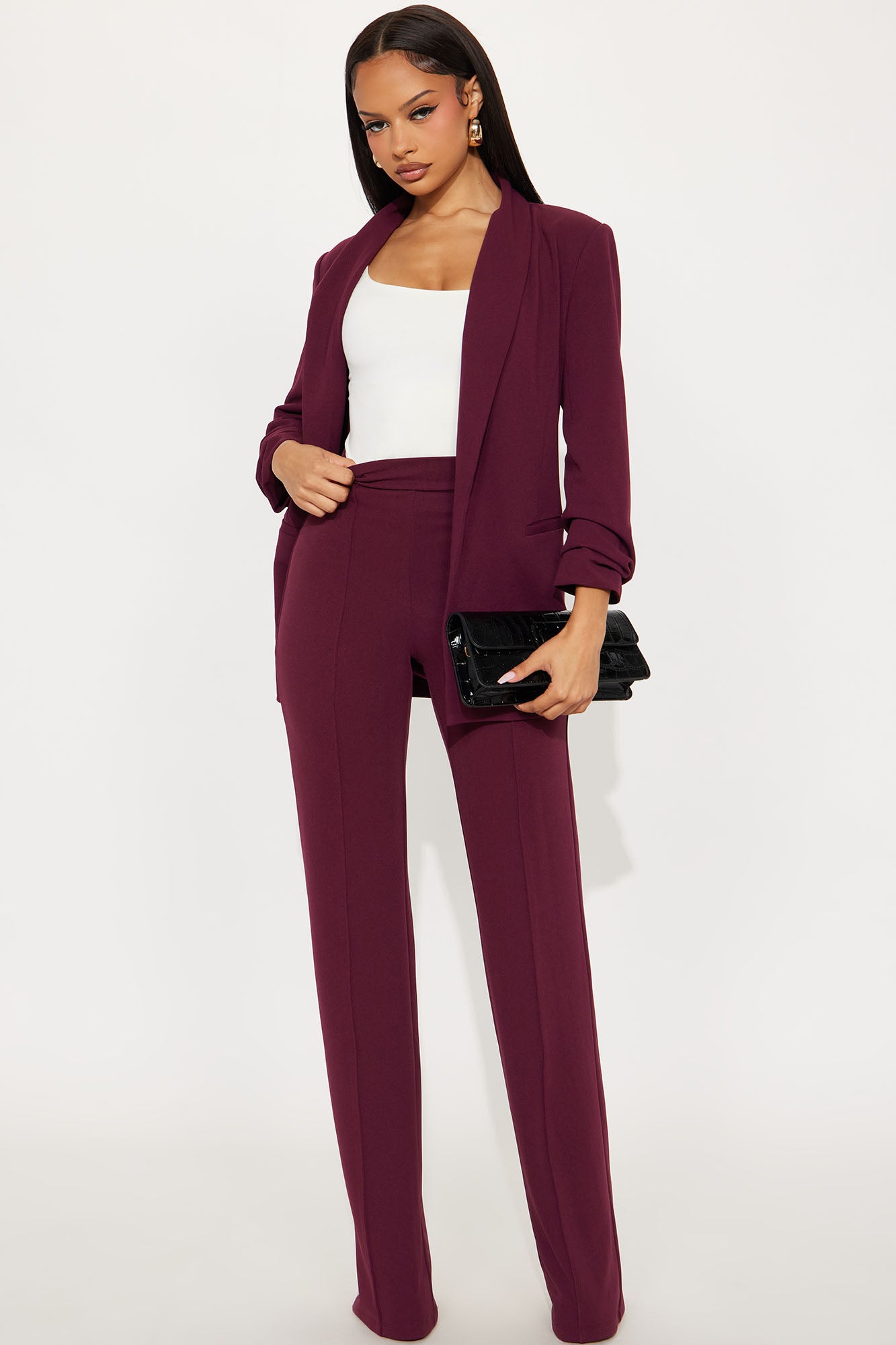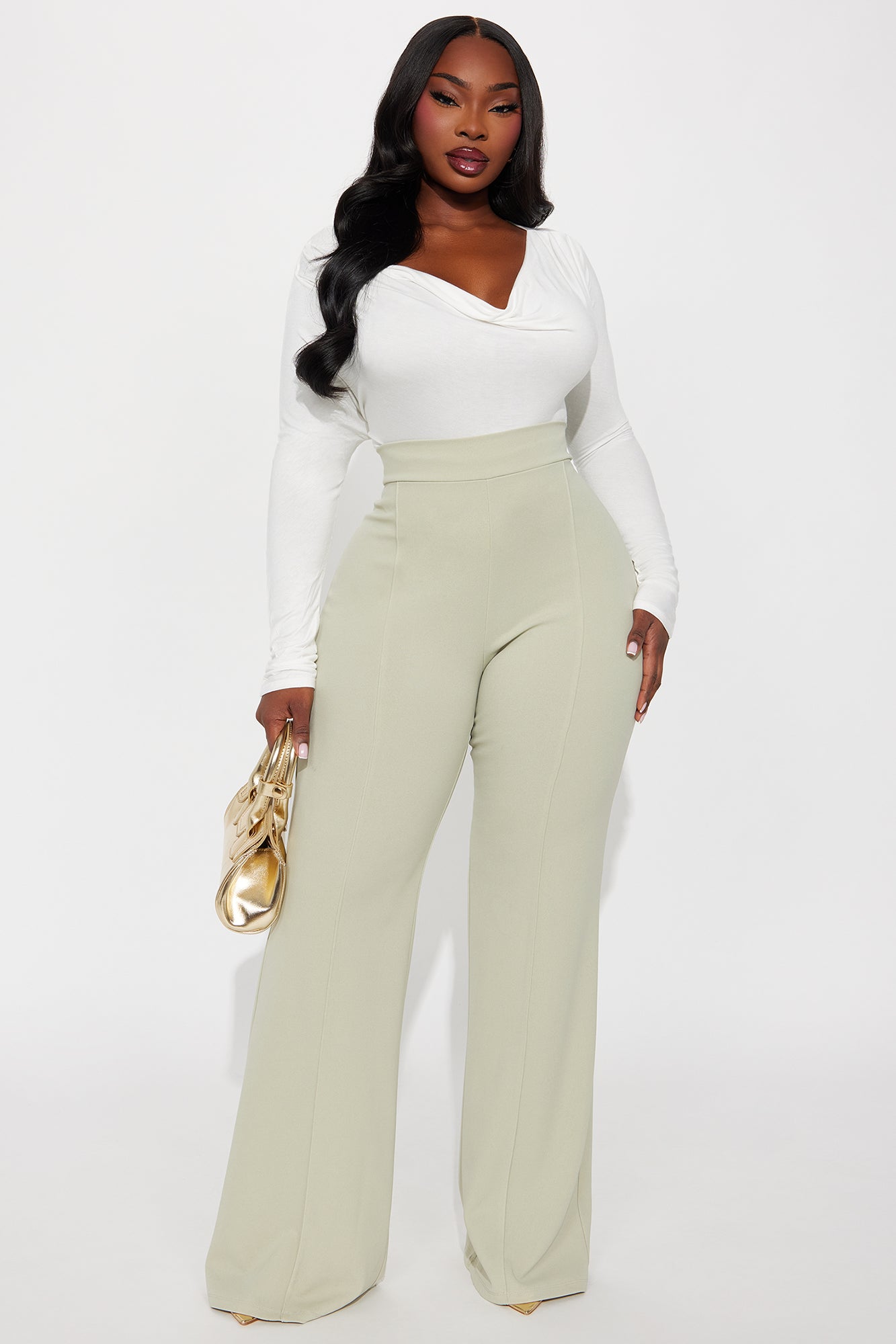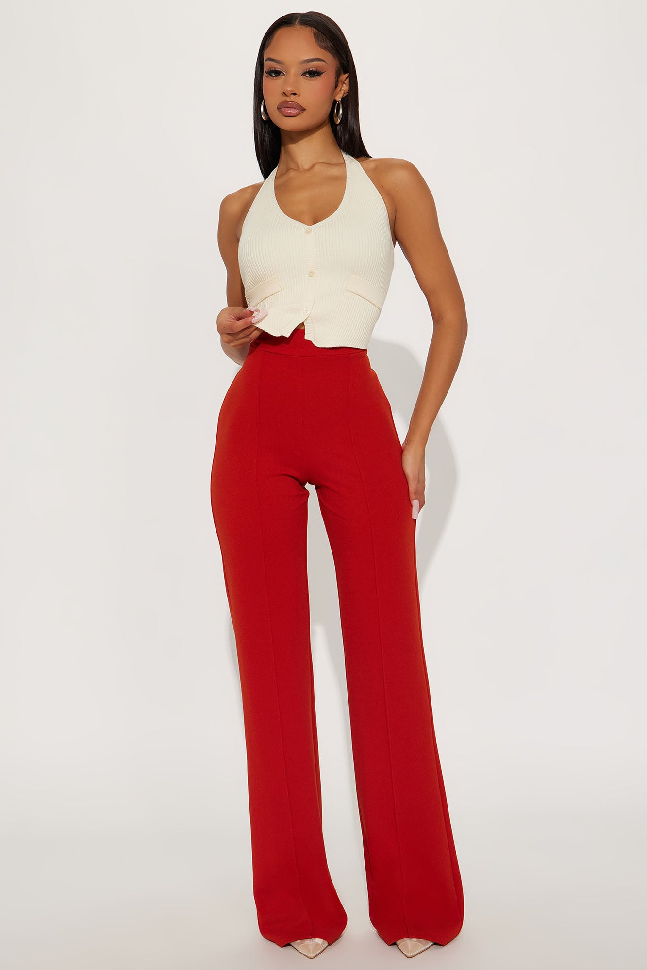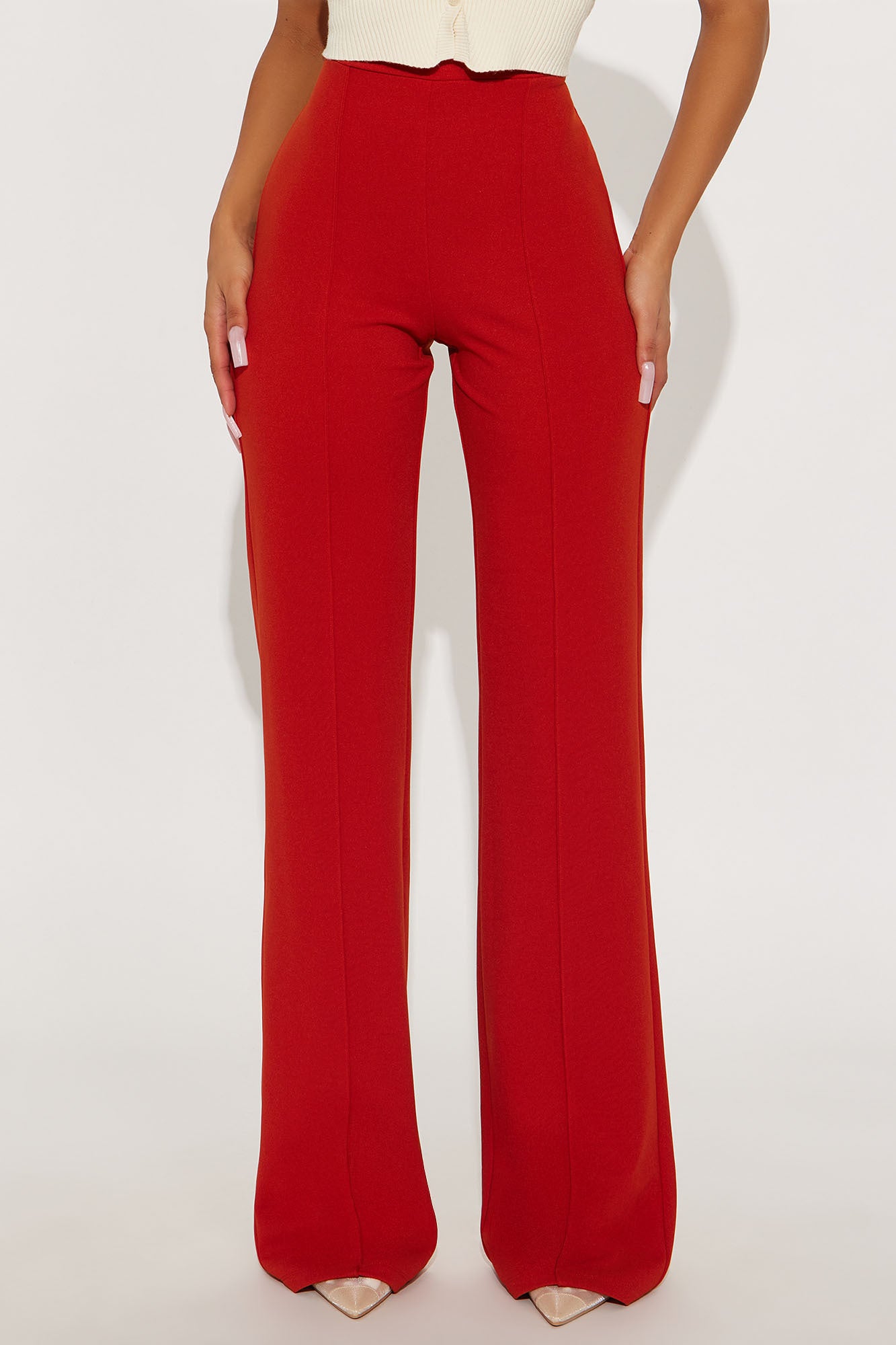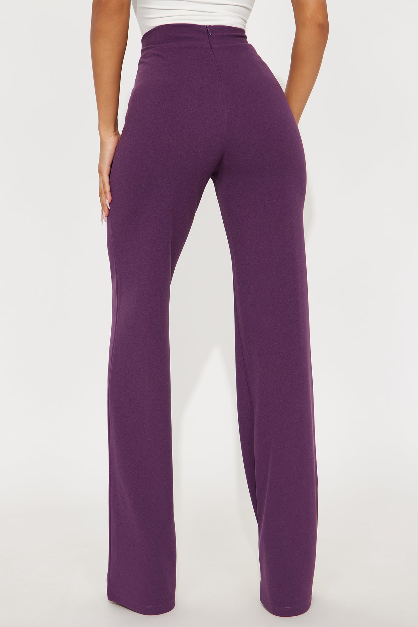 Available In Black, Burgundy, Charcoal, Chocolate, Hunter Green, Ivory, Mauve, Navy, Oatmeal, Olive 1, Plum, Red, Royal, Rust, Sage, Taupe And White.Available in Regular, Tall, and Petite InseamsTall: 36" InseamHigh RisePintuck FrontHidden Back ZipperStretch95% Polyester 5% SpandexImported