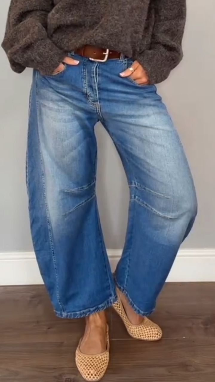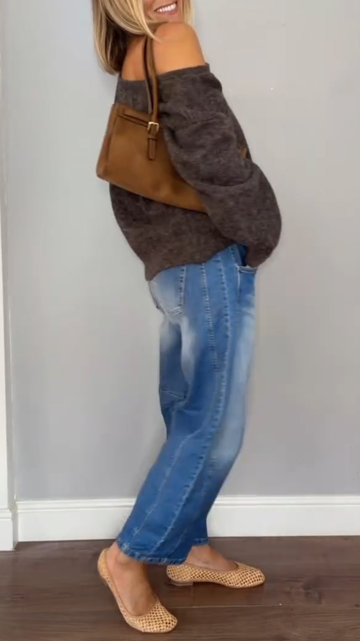 Women Diagonal Sweater+ Washed Denim Jeans Casual Set
