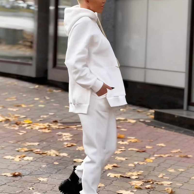 HOODED DESIGN - The attached hood provides functional warmth and protection against light wind and chill. It also adds a classic streetwear element to the design, enhancing the overall relaxed and sporty vibe.