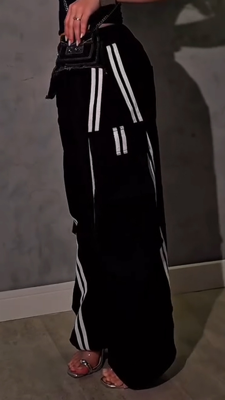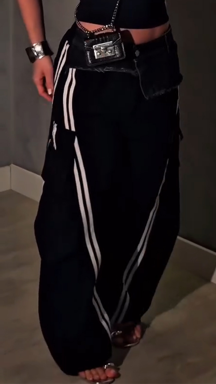 Women Patchwork Denim Vertical Stripe Casual Pants