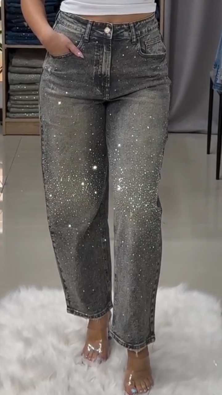 Women Rhinestone Washed Casual Jeans
