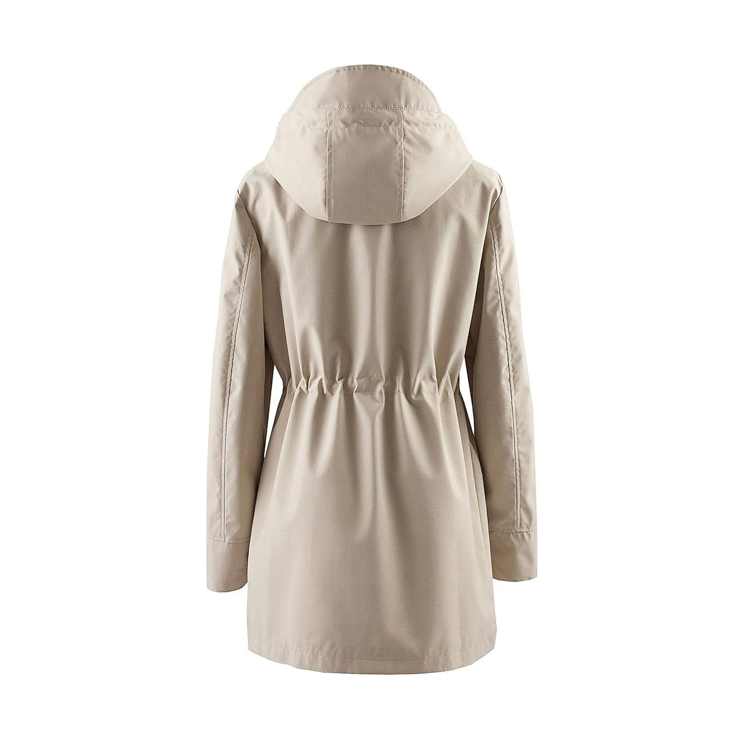 womens beige hooded zip up trench coat with drawstring waist multiple pockets casual long sleeve jacket for fall winter machine washable Product details 18