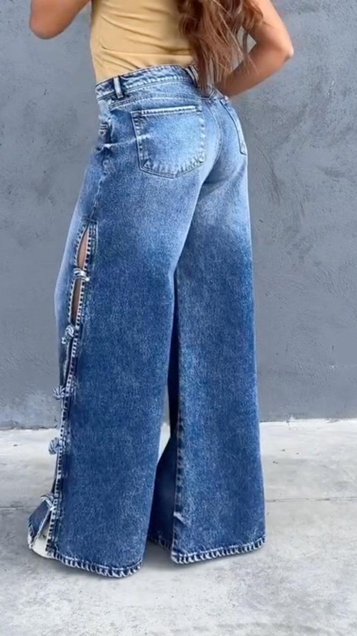 Women's Open-leg Washed Wide-leg Casual Jeans