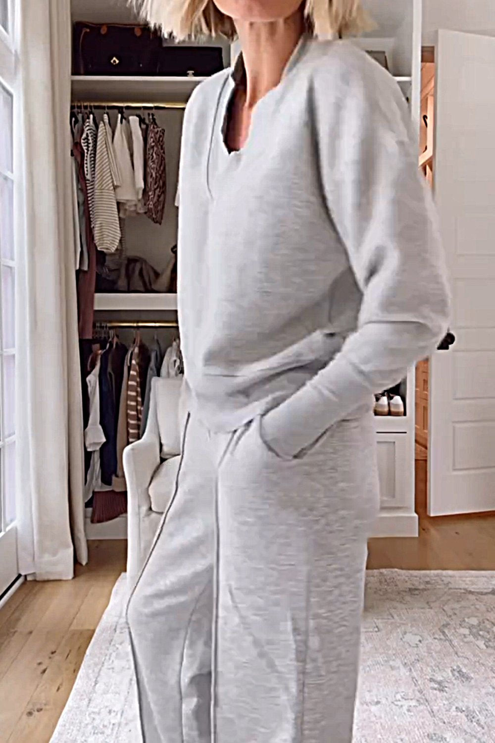 Women's Solid Color V-neck Top & Pants Two-piece Set
