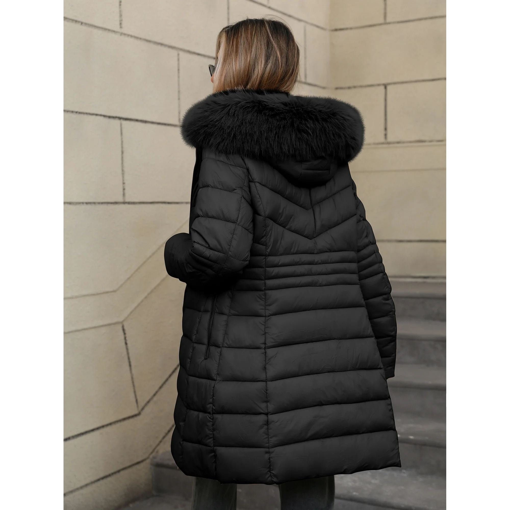 Women's Casual Hooded Waterproof Cotton Jacket, Lightweight Down Coat with Pockets, Loose Fit Thick Fabric for Fall & Winter