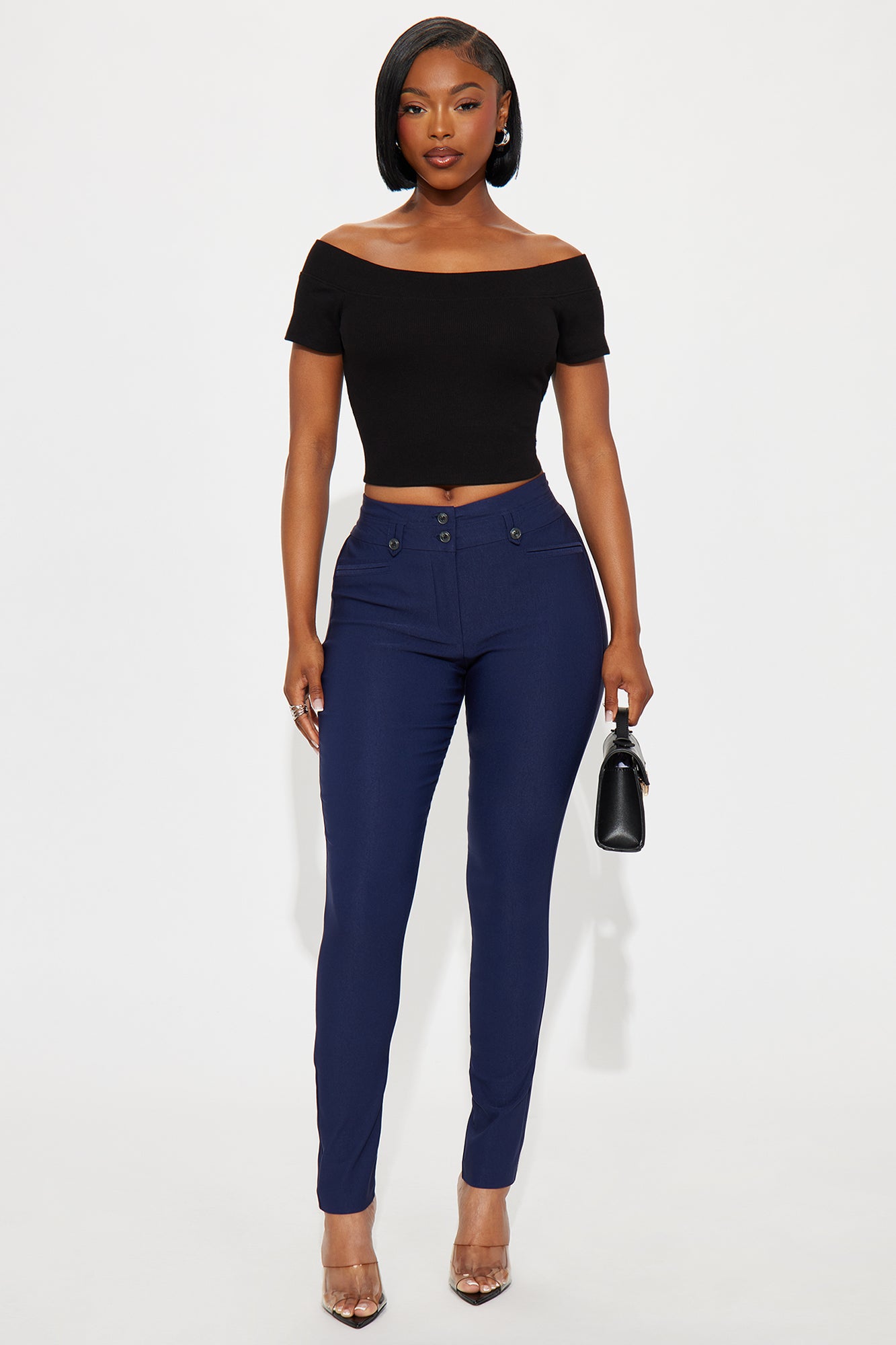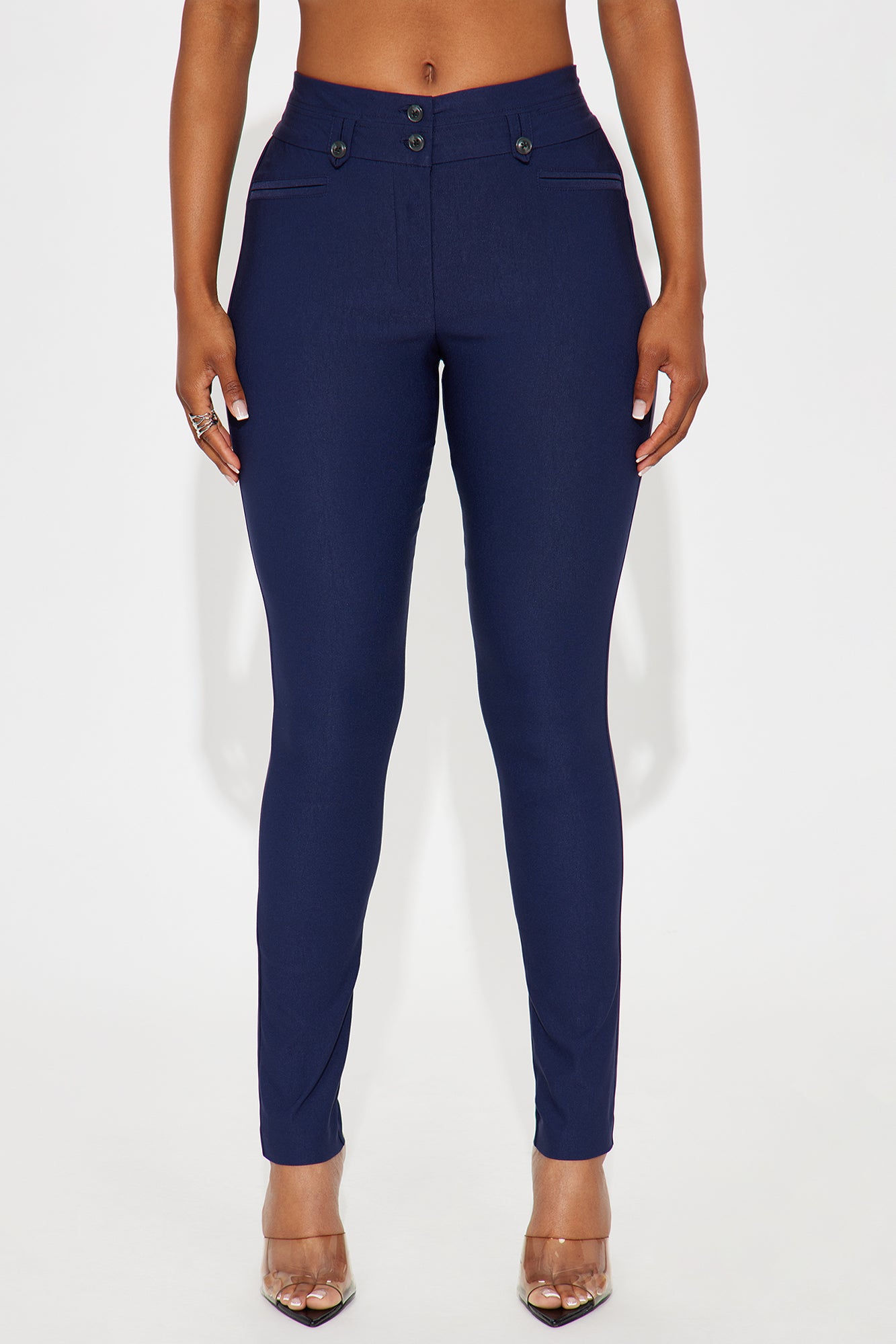 Available In Black, Charcoal And Navy.Double Button ClosureBelt LoopsSuper StretchMillennium Fabric74% Rayon 22% Nylon 4% SpandexImported