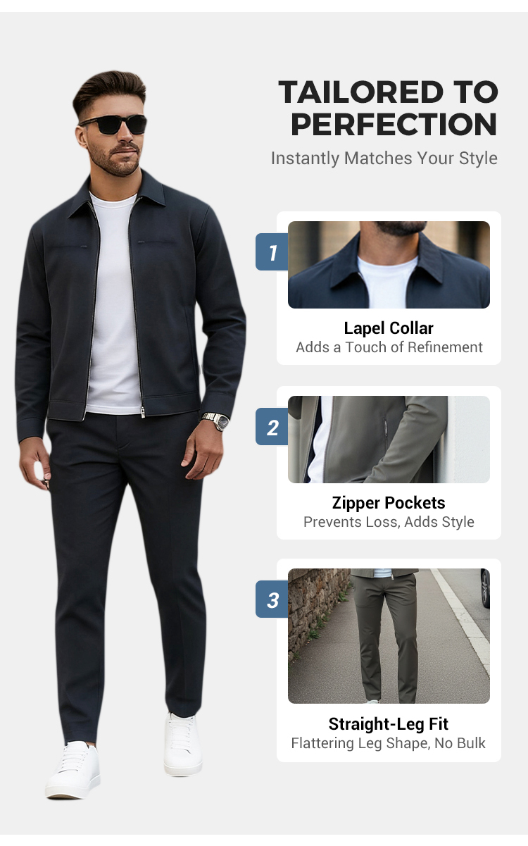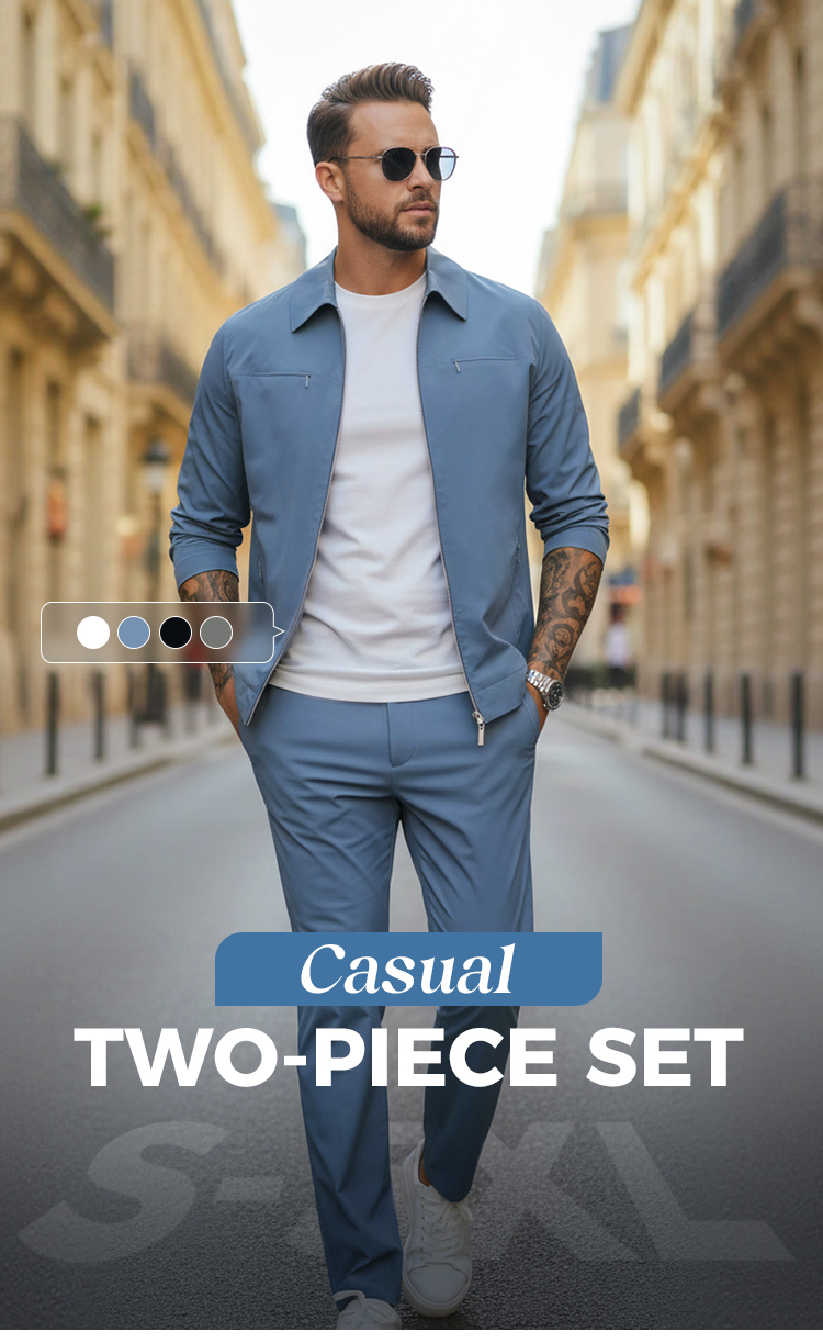✈️Free Shipping✈️Men’s Casual Solid Color 2-Piece Set – Jacket & Pants