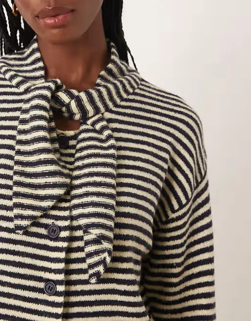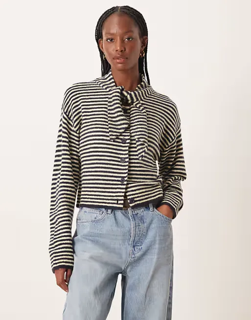Upgrade your knitwear collection in an instant with this on-trend cardigan, complete with cosy scarf detailing for extra warmth and style. The button up fastening and ribbed trims make it a classic pick on cooler days. Team with high waisted jeans and boots for a chic outfit.