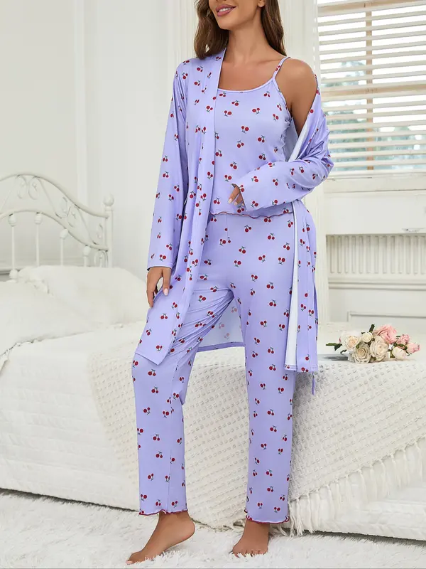 【Charming Print】: With its unique cherry fruit pattemthis set brings a playful and delicious ambiance to yournight.