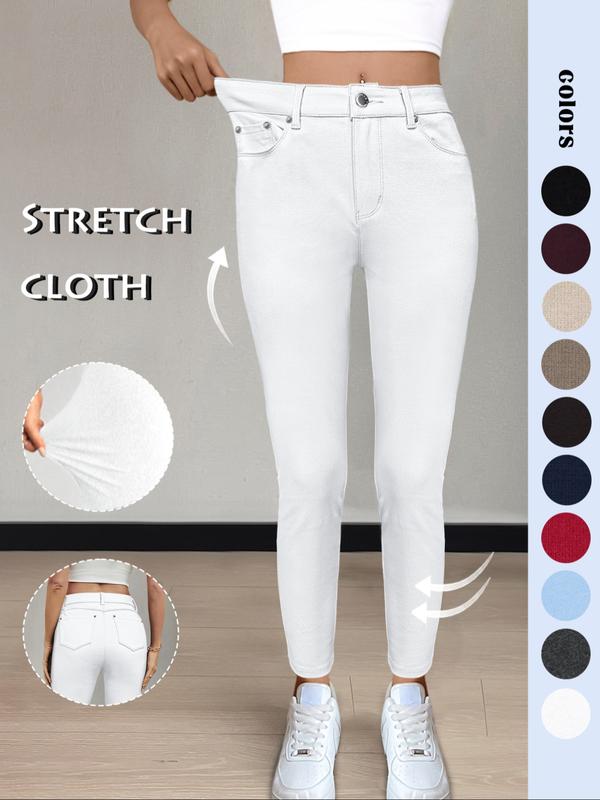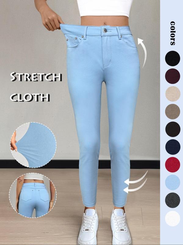 • Women's Plain Pocket Button Leggings, Casual Comfy Skinny Pants for Yoga Gym Workout, Ladies Bottoms for Fall & Winter,T-Chic