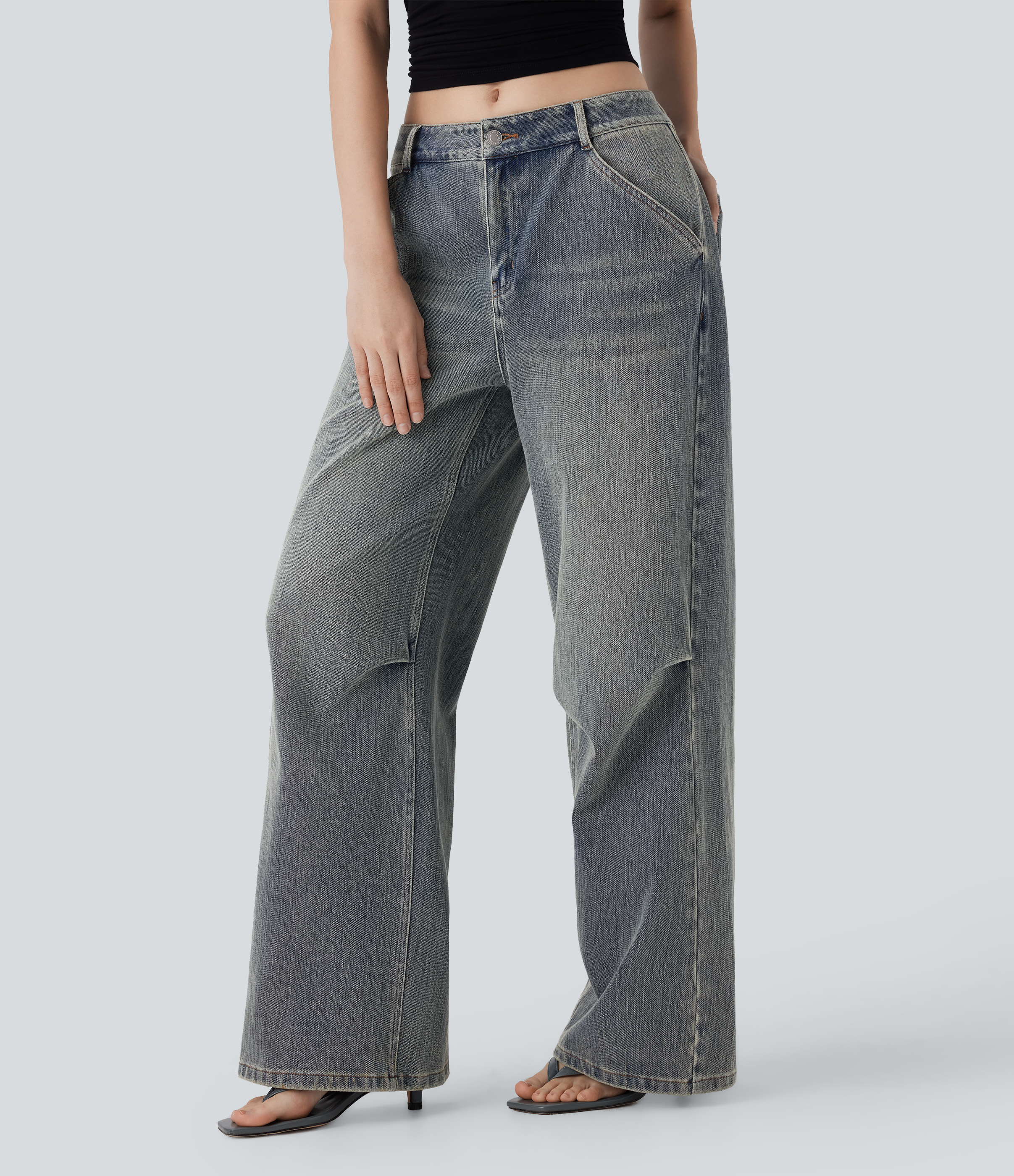 Halara FlexTM Low Rise Wide Leg Washed Casual Jeans with Pockets