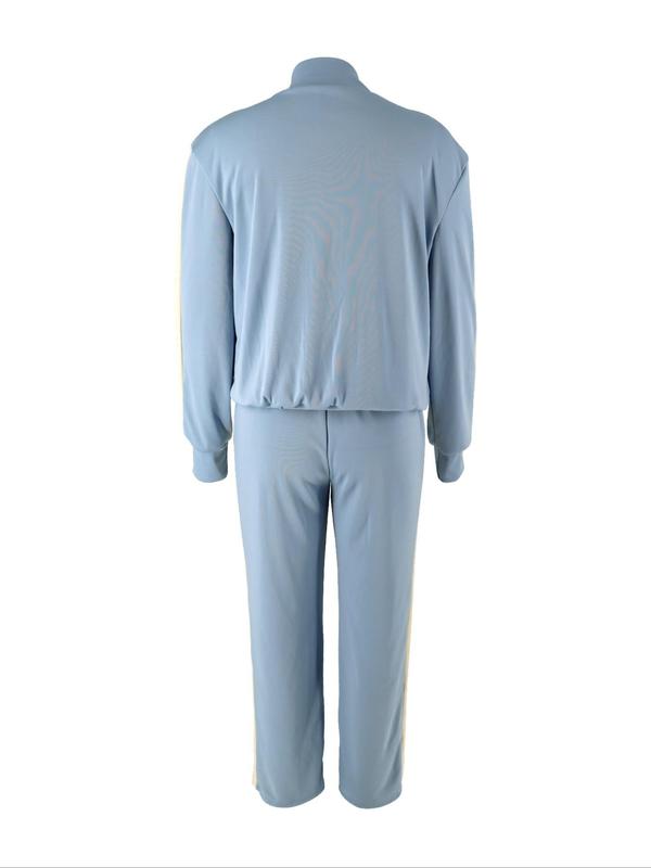 • Two-piece Set Women's Patchwork Top & Wide Leg Pants Set, Casual Long Sleeve Outerwear & Pants for Daily Wear, Ladies Summer Clothes