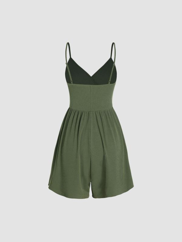 • Women's Plain Backless Wrap Cami Romper, Casual Adjustable Spaghetti Strap Wide Leg Romper, Summer Outfits 2025, Ladies Clothes for Daily Wear