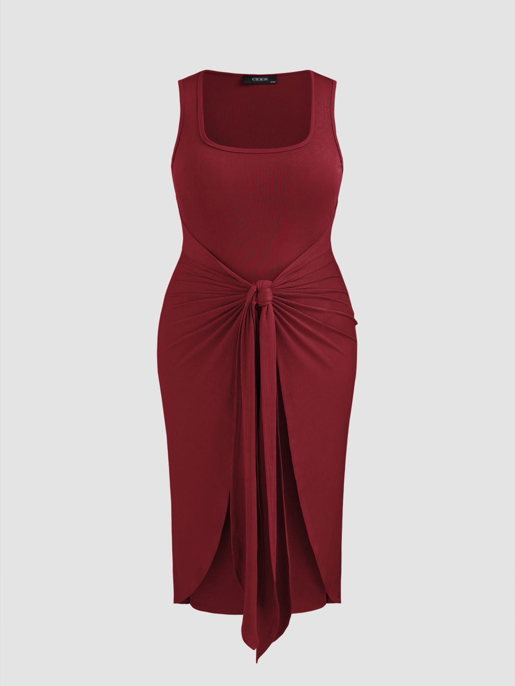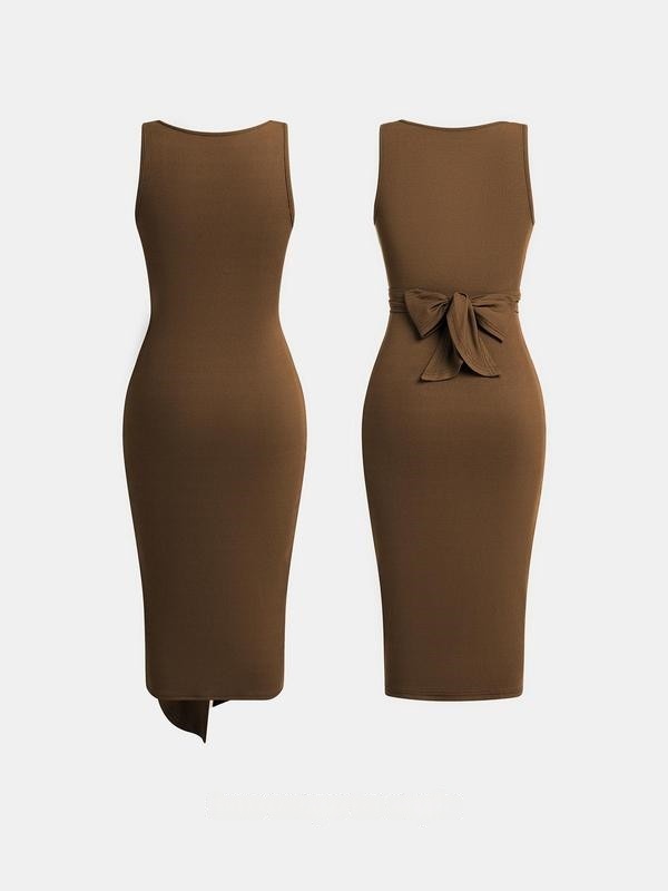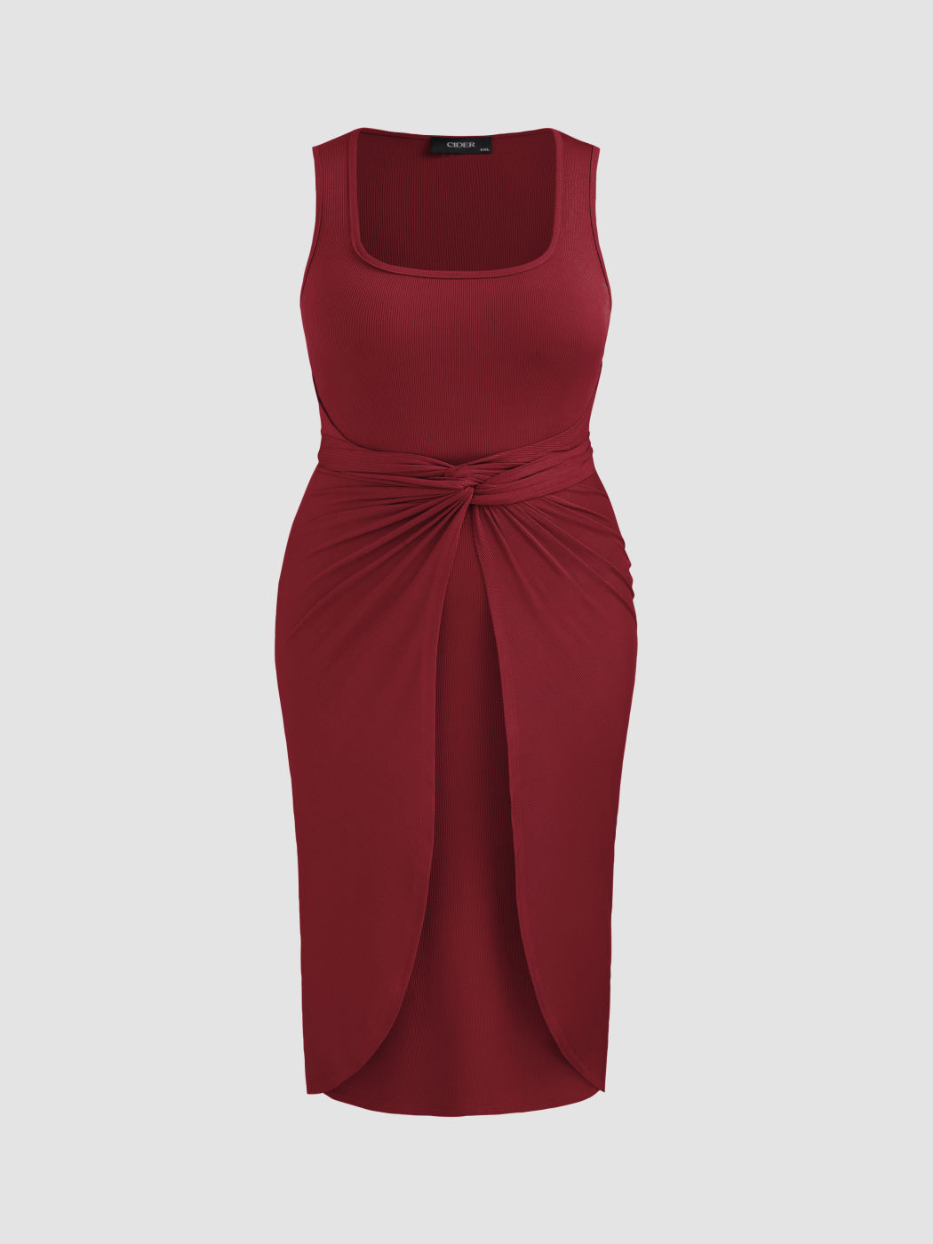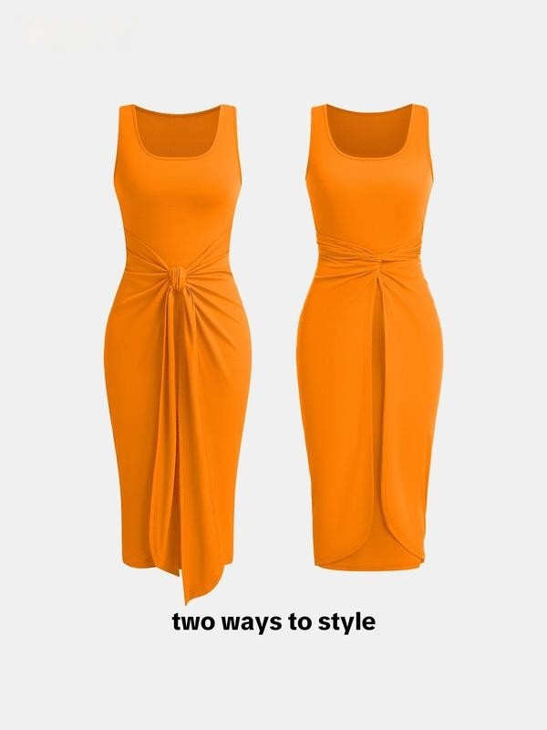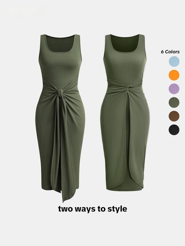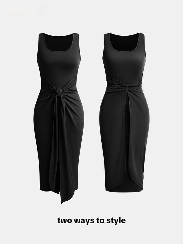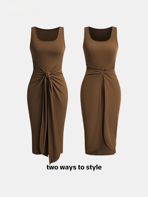 Square Neck Solid Twist Knotted Maxi Dress Curve & Plus Dress