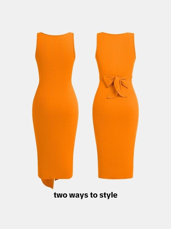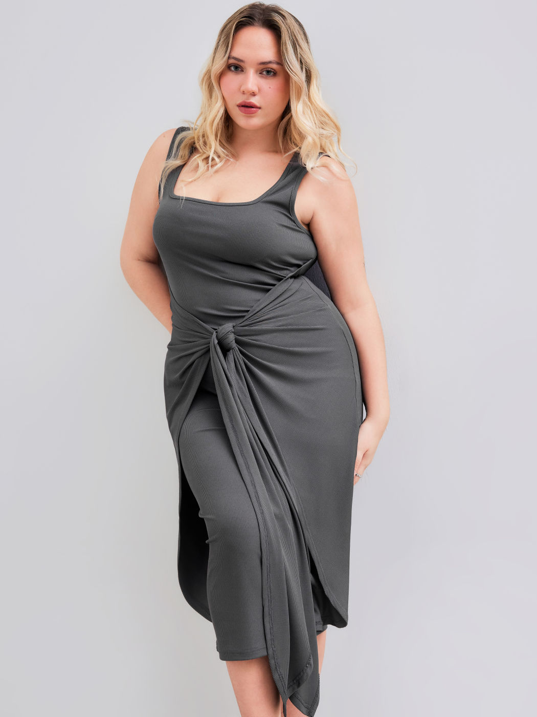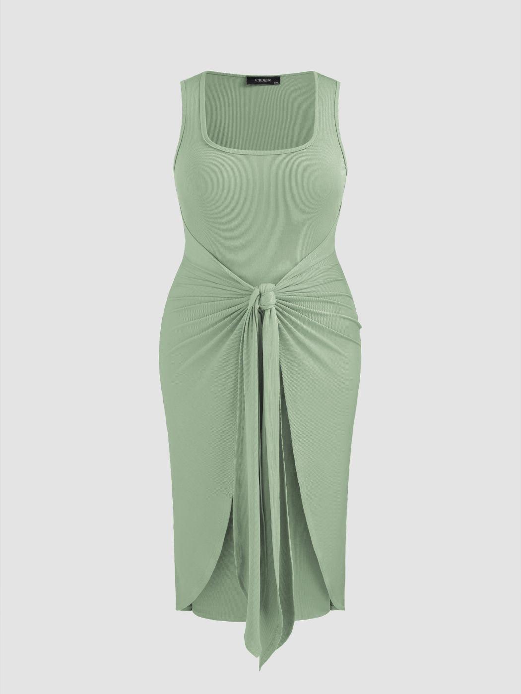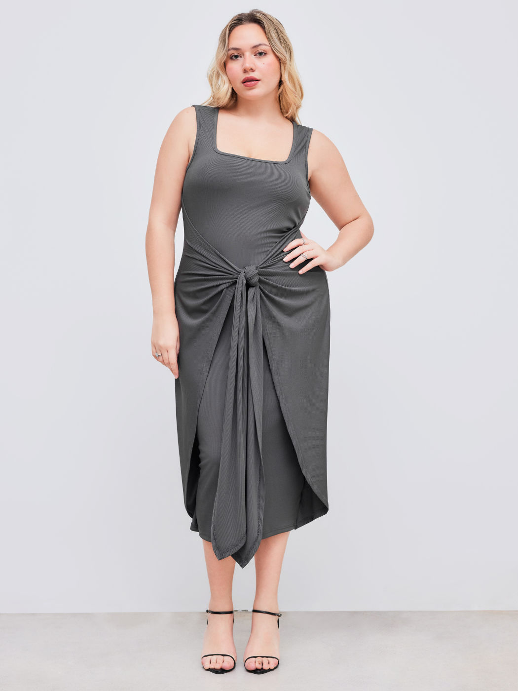 Square Neck Solid Twist Knotted Maxi Dress Curve & Plus Dress
